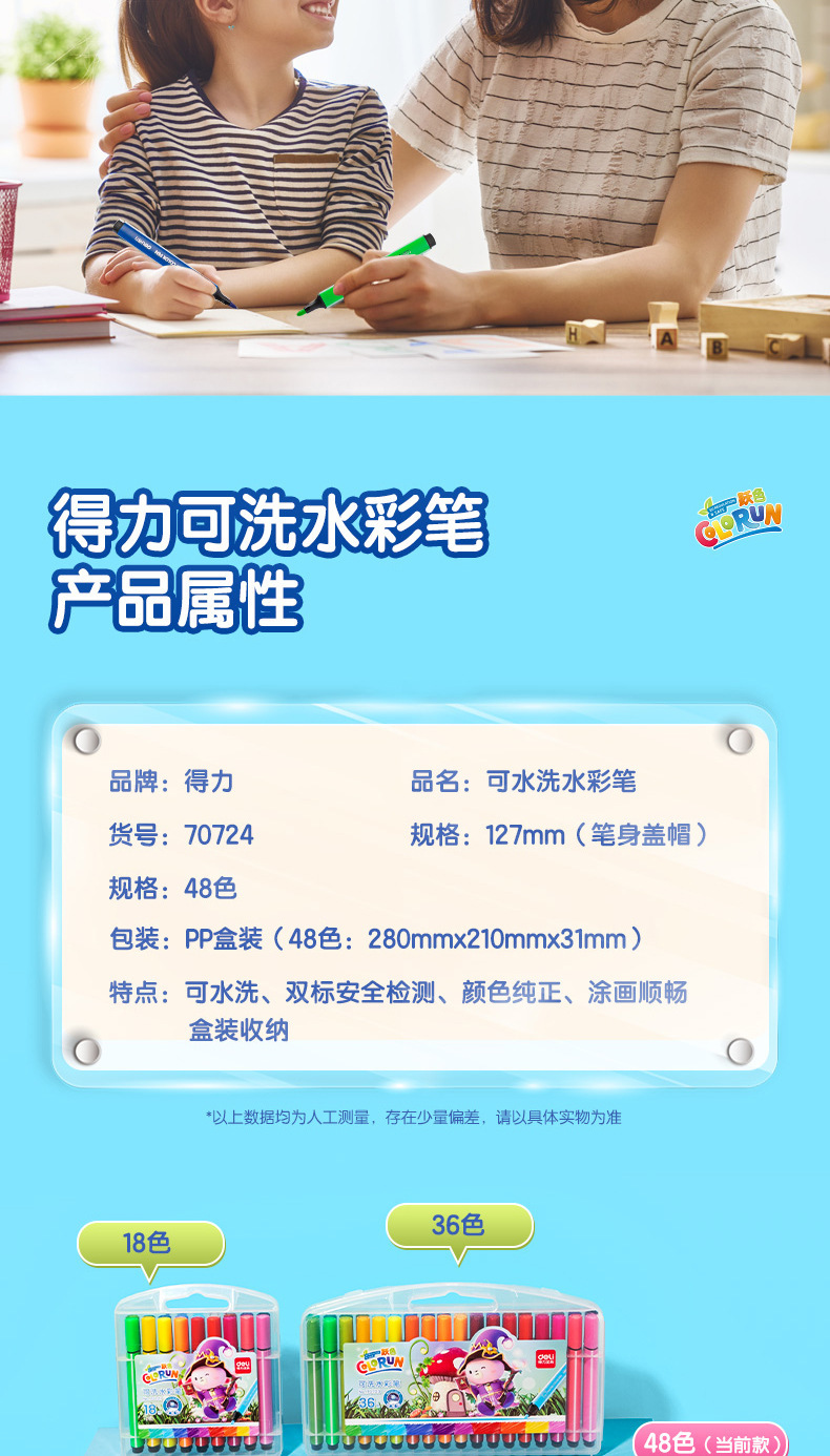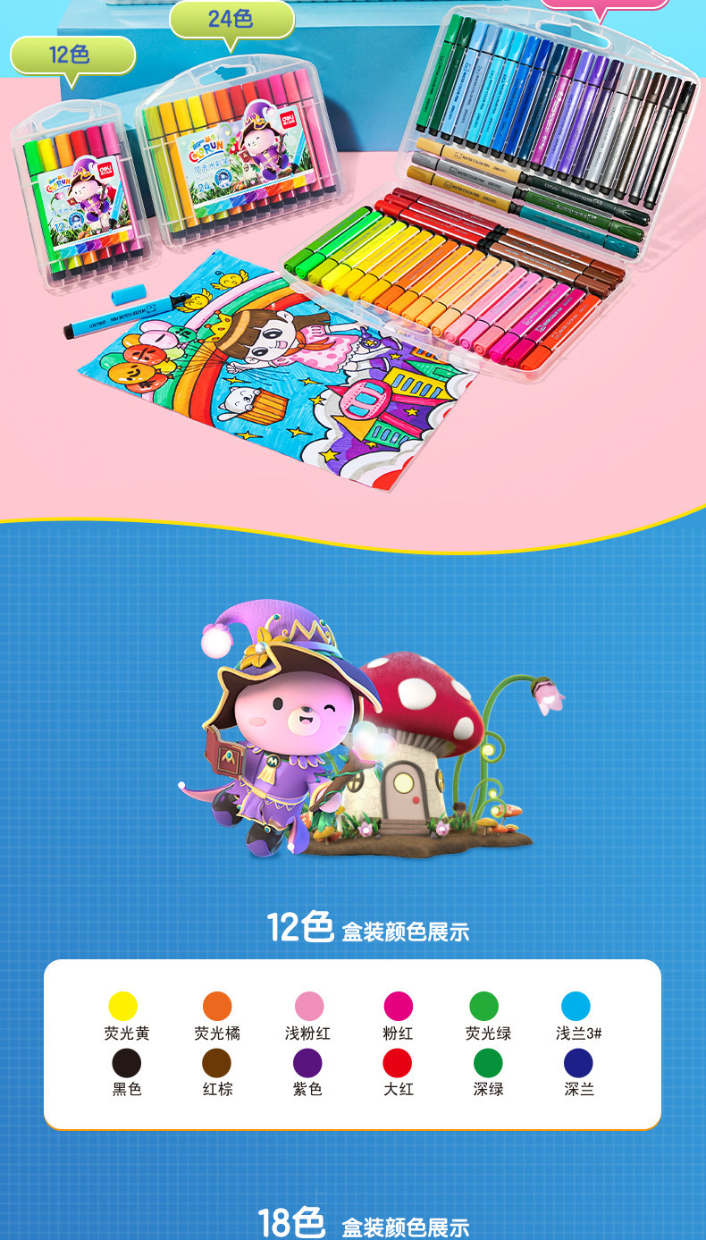 델리 문구 세척 가능한 수채화 펜 학생 낙서 펜 그림 삼각형 막대 컬러 브러시 12/24/36 색상
