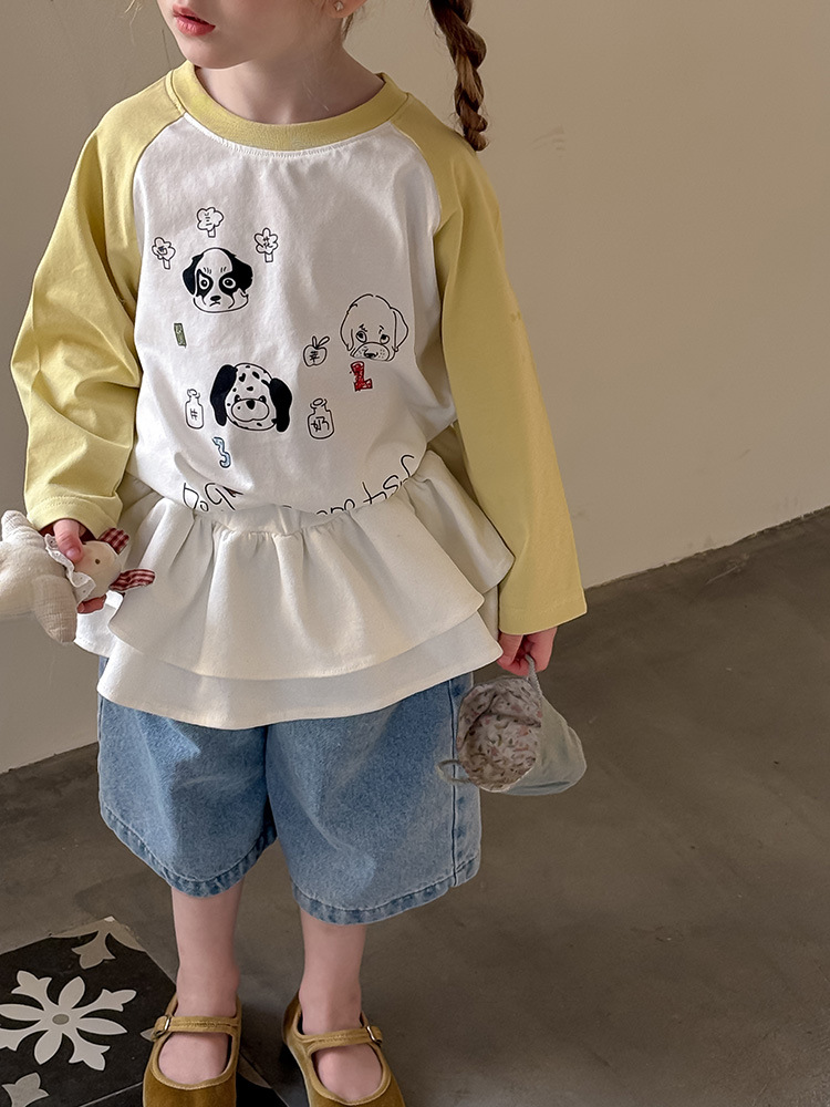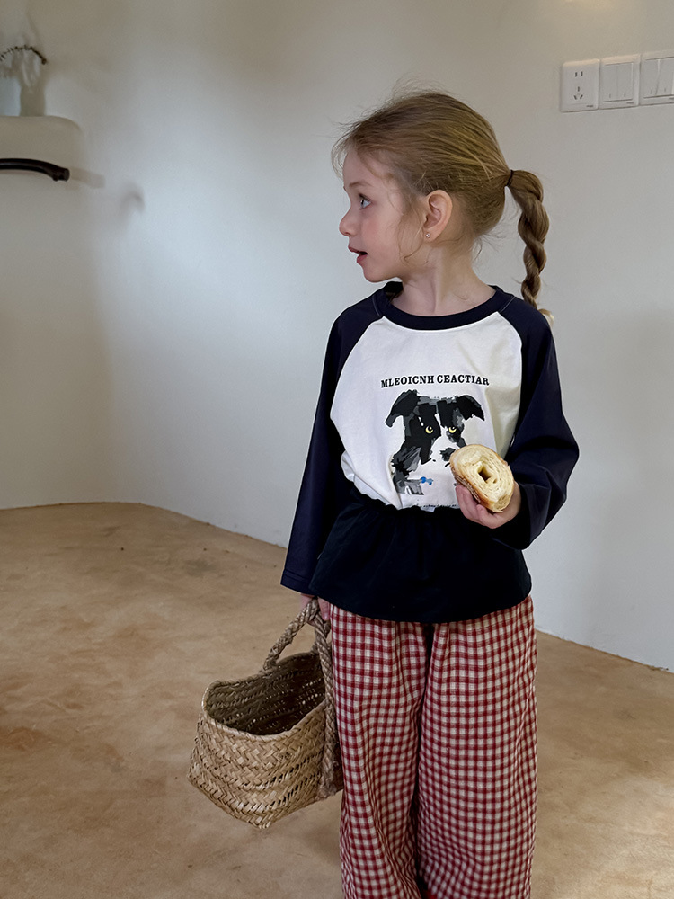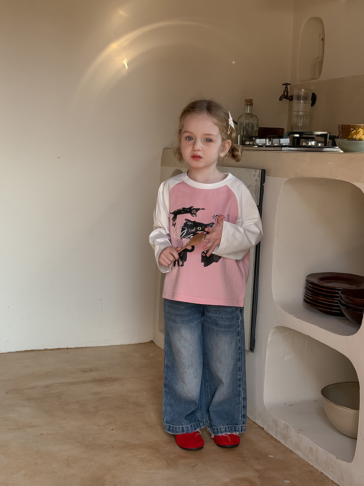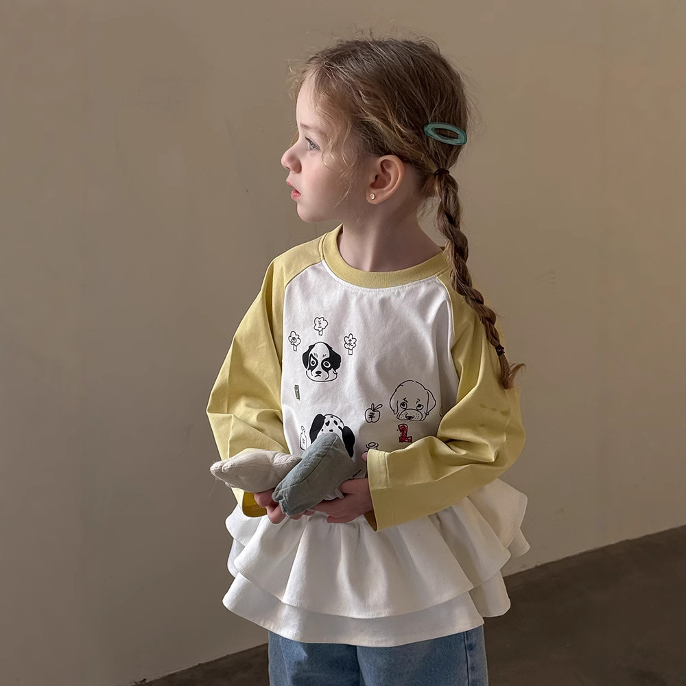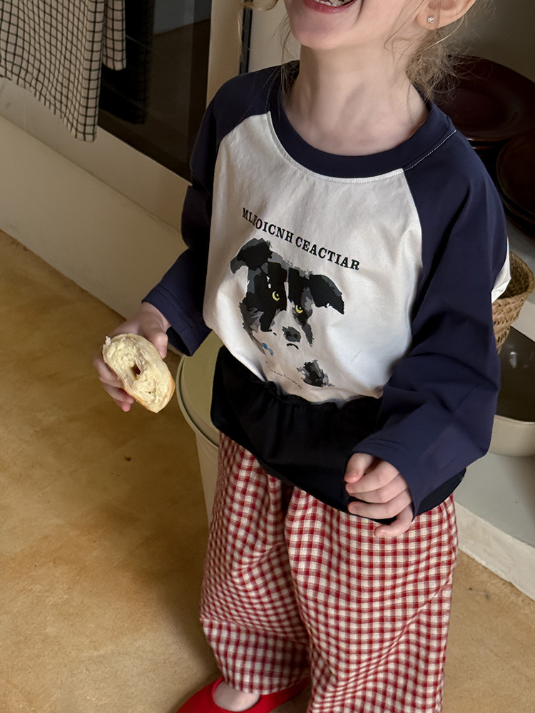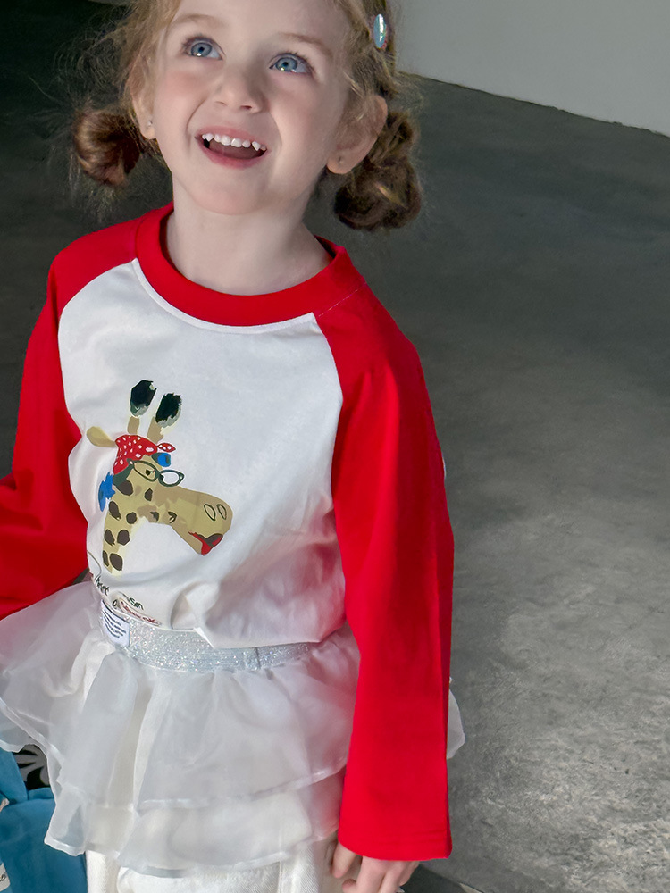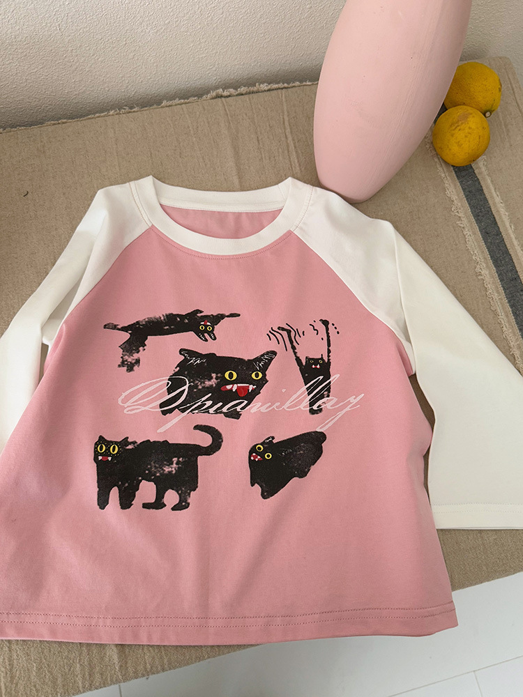 어린이 래글런 슬리브 만화 티셔츠 2025 봄 가을 신상 한국 스타일 남녀 공용 만화 배색 긴팔 라운드넥 티셔츠