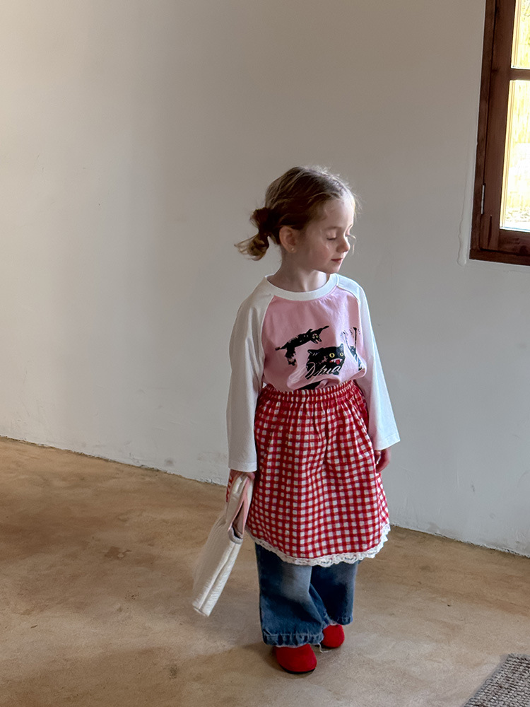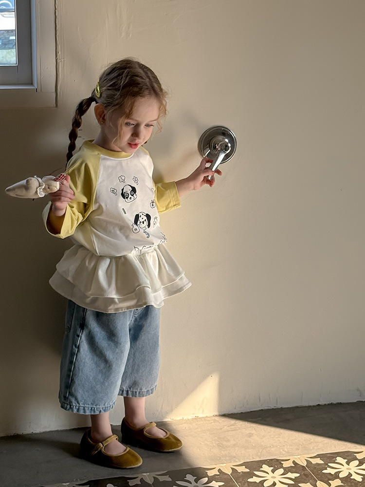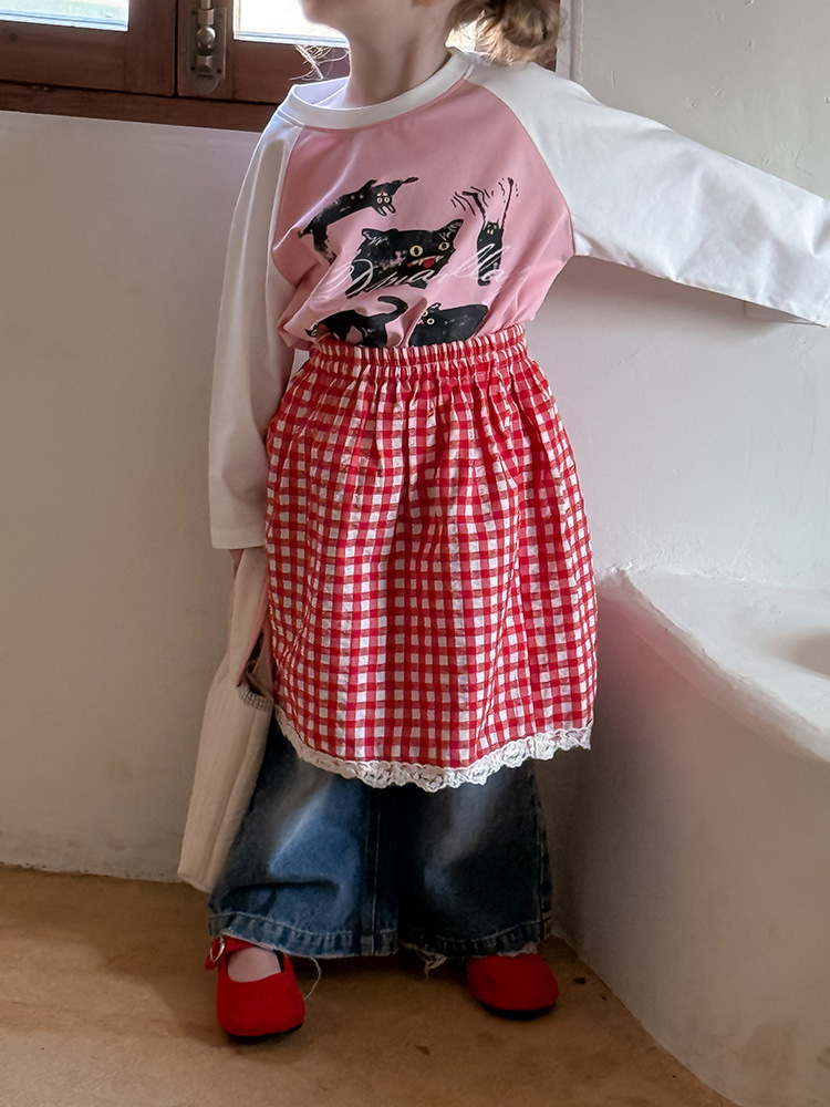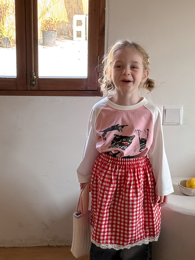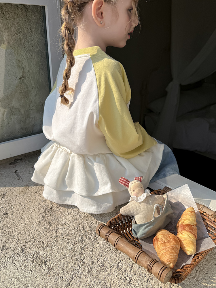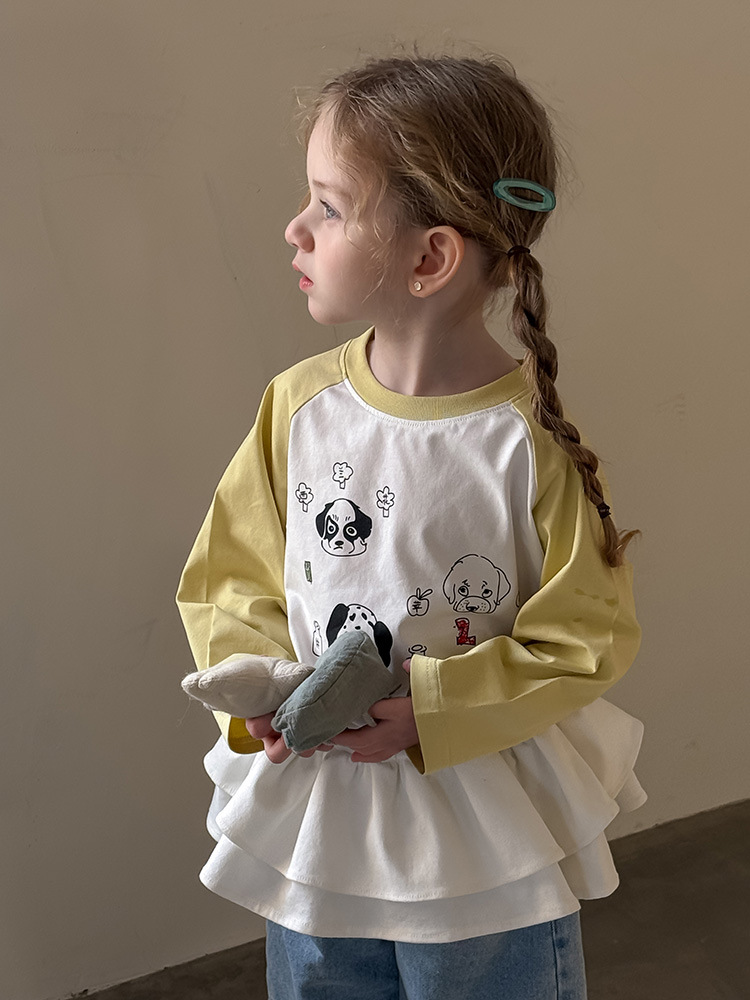 어린이 래글런 슬리브 만화 티셔츠 2025 봄 가을 신상 한국 스타일 남녀 공용 만화 배색 긴팔 라운드넥 티셔츠
