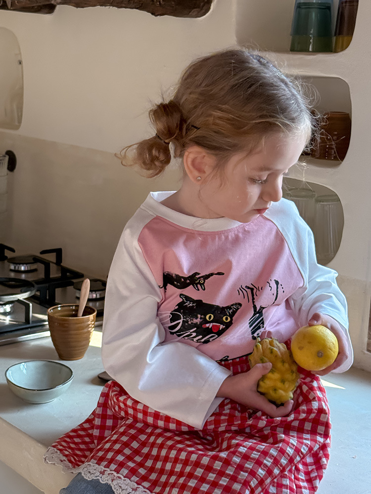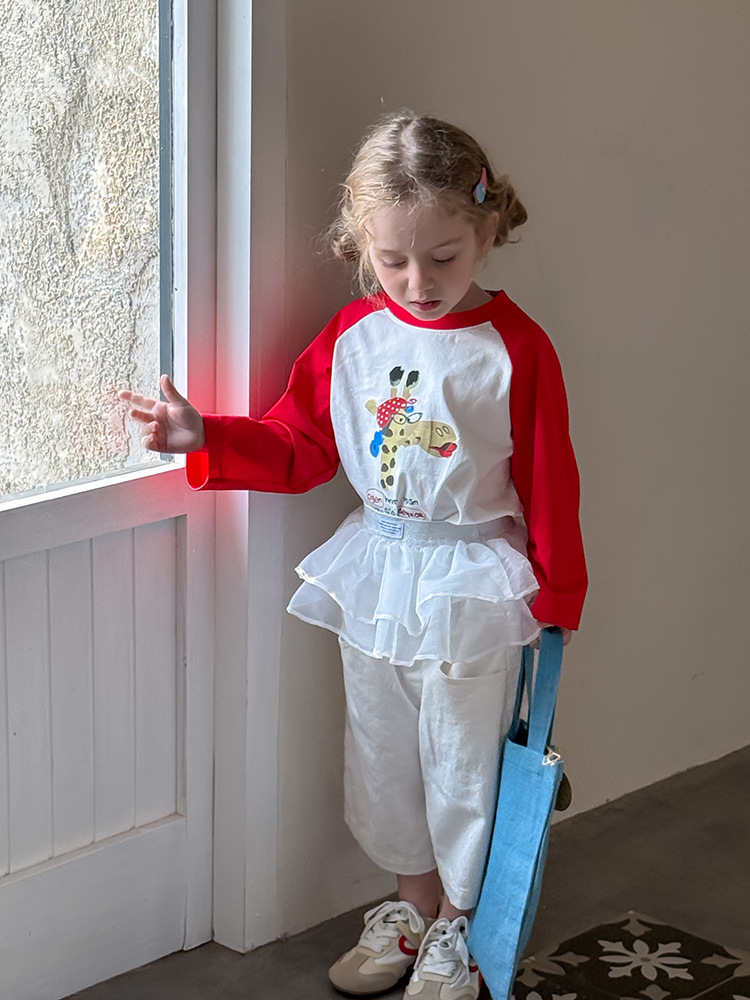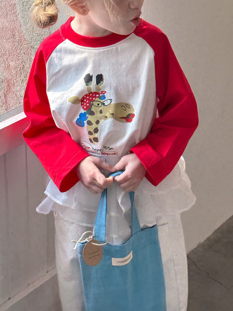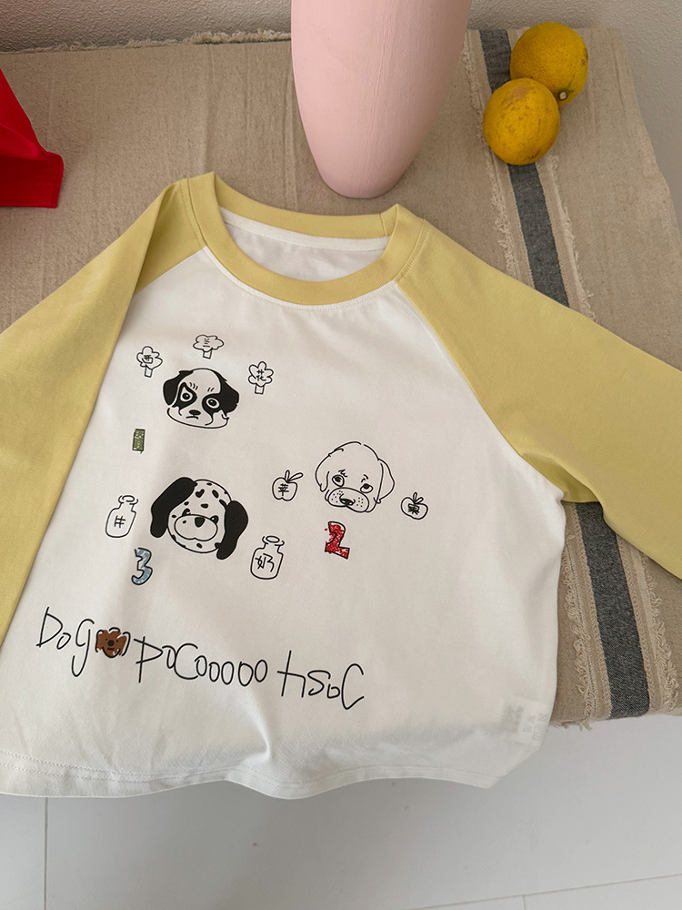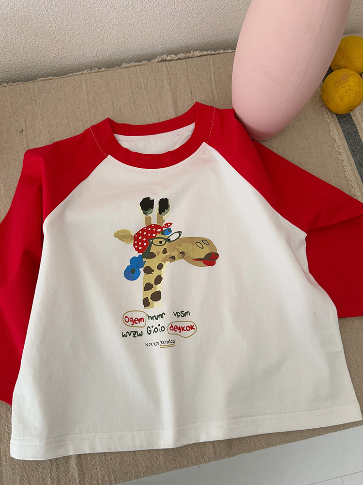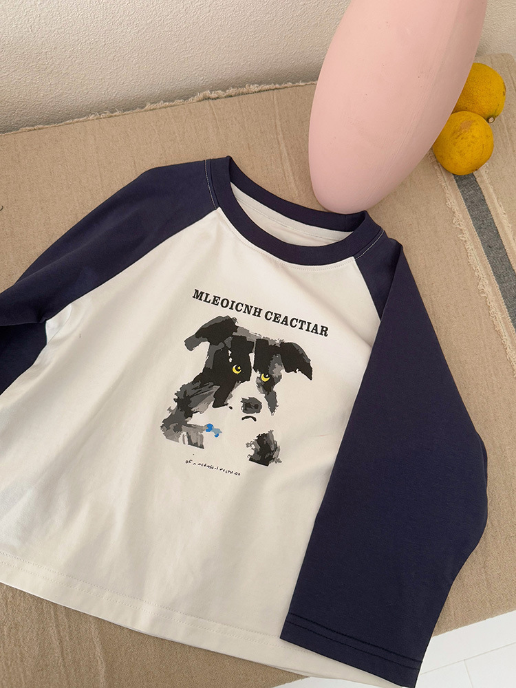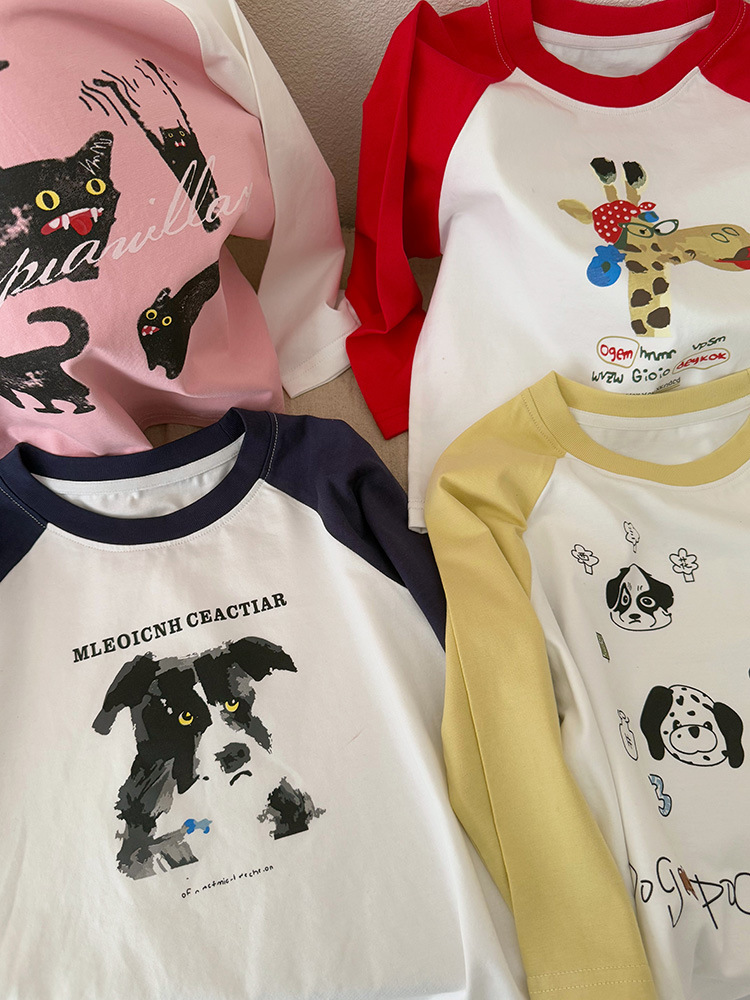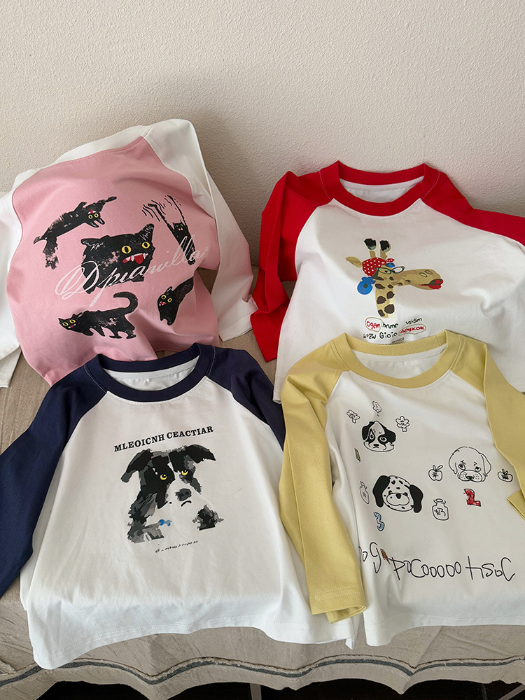 어린이 래글런 슬리브 만화 티셔츠 2025 봄 가을 신상 한국 스타일 남녀 공용 만화 배색 긴팔 라운드넥 티셔츠스토어 가기