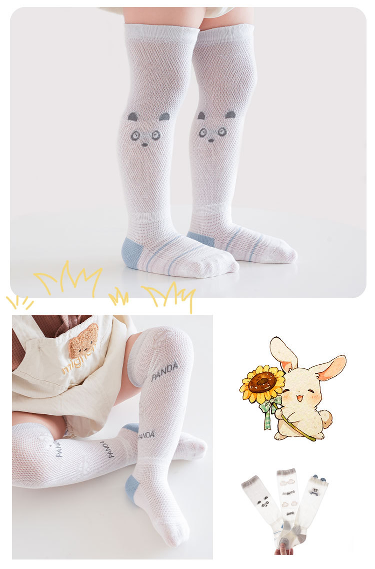 25 봄과 여름 얇은 아기 스타킹 메쉬 뼈없는 만화 팬더 아기 무릎 양말 소년 항균 방지 모기 양말