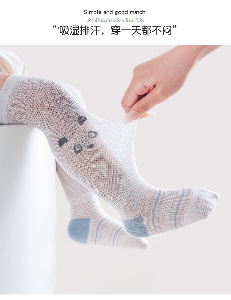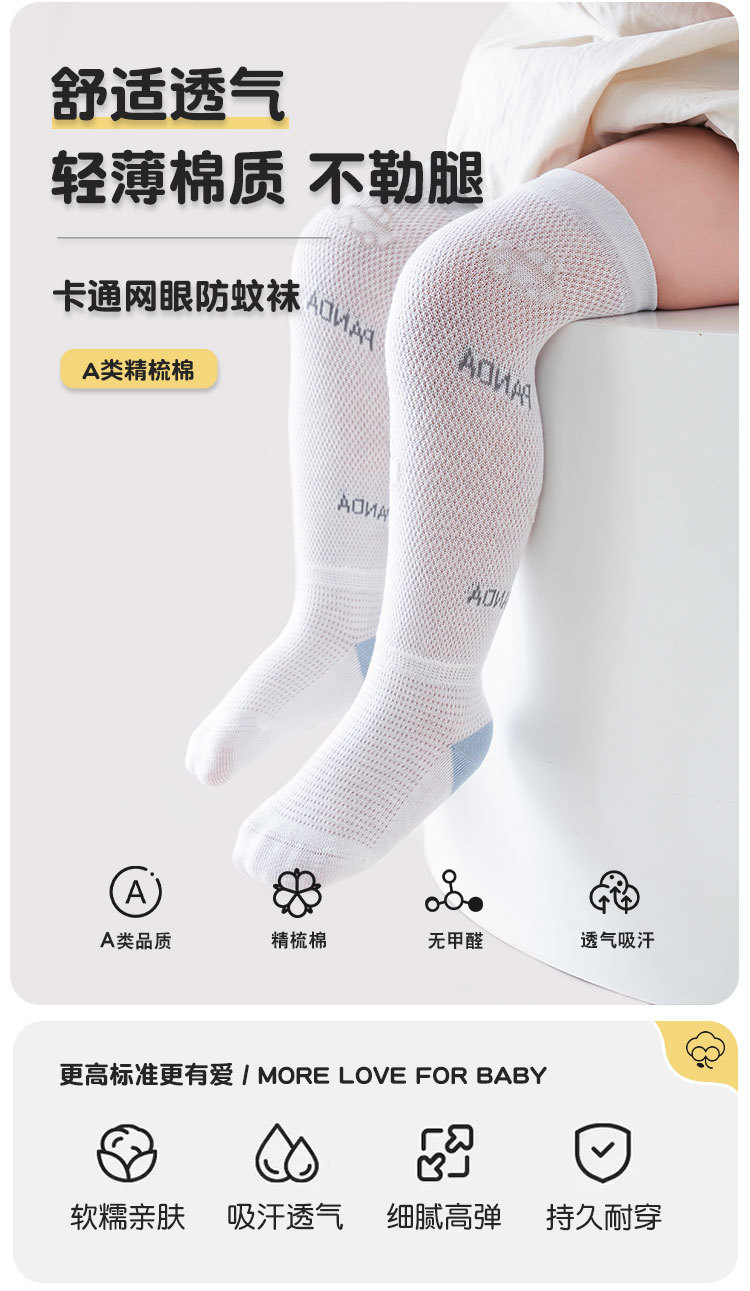 25 봄과 여름 얇은 아기 스타킹 메쉬 뼈없는 만화 팬더 아기 무릎 양말 소년 항균 방지 모기 양말스토어 가기