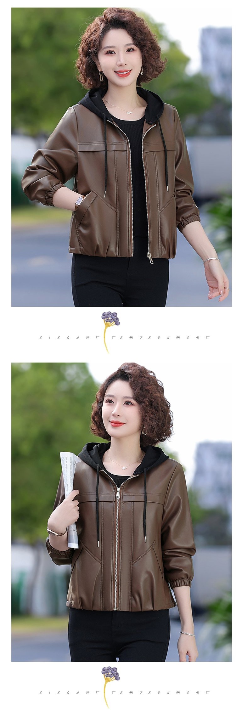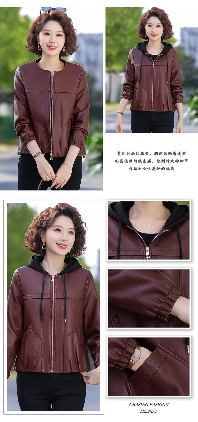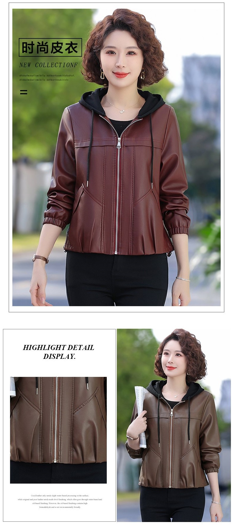 패션 어머니의 봄과 가을 가죽 자켓 코트 중년 및 노인 여성의 가을과 겨울 PU 가죽 코트 봄 어머니의 새로운 탑