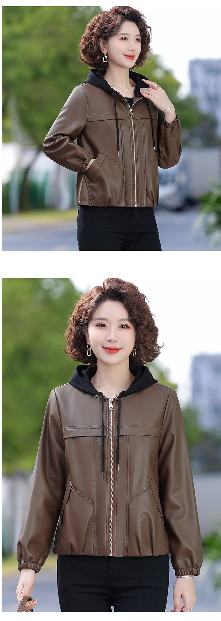 패션 어머니의 봄과 가을 가죽 자켓 코트 중년 및 노인 여성의 가을과 겨울 PU 가죽 코트 봄 어머니의 새로운 탑스토어 가기