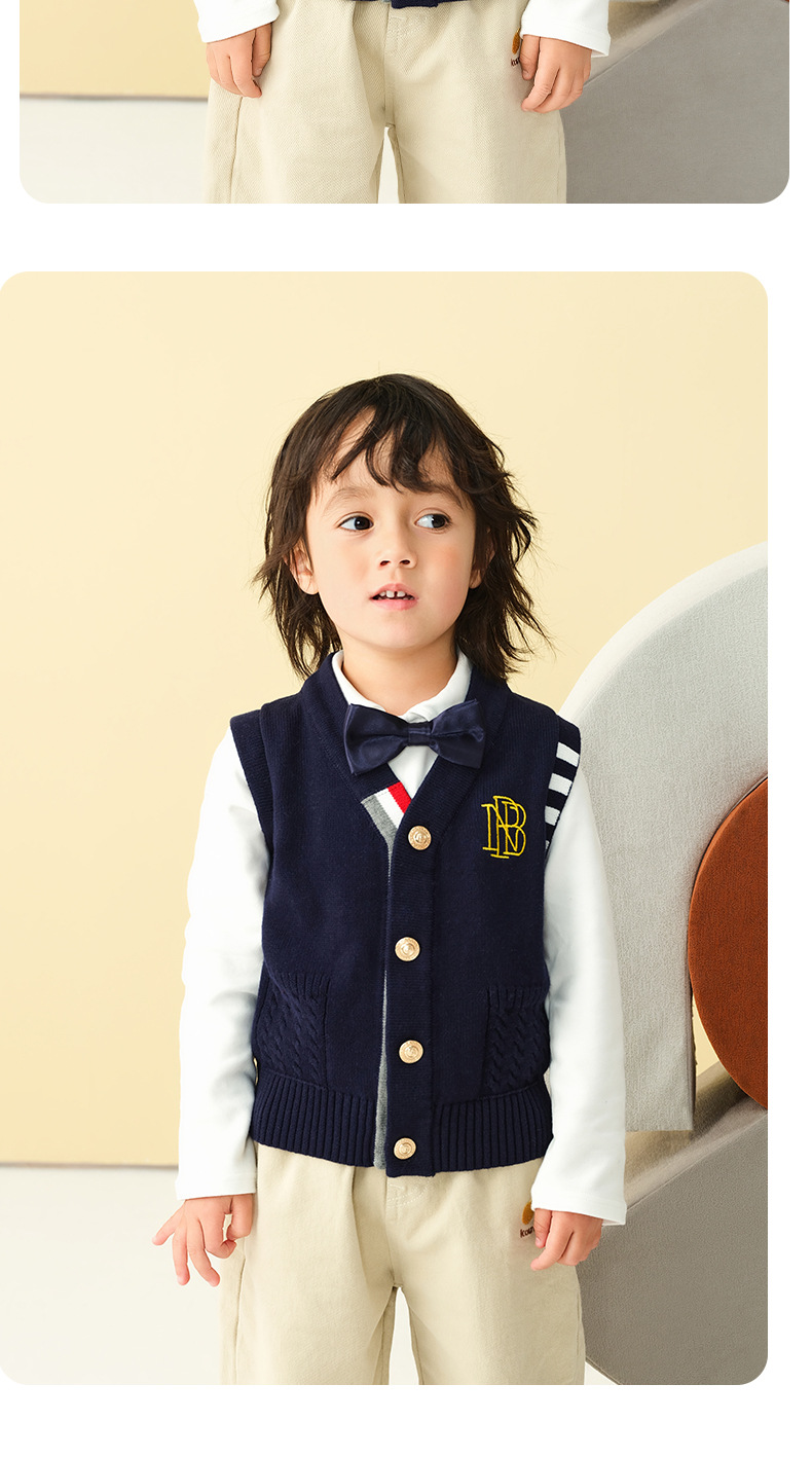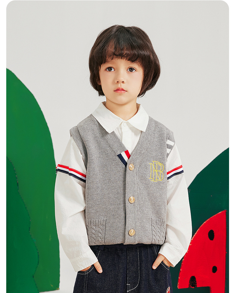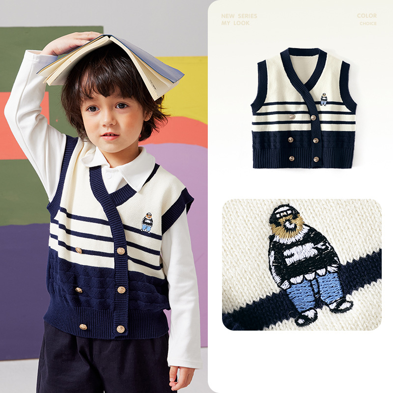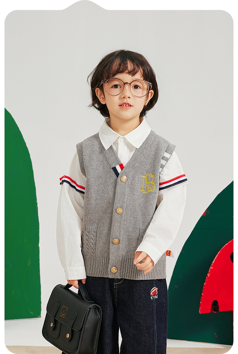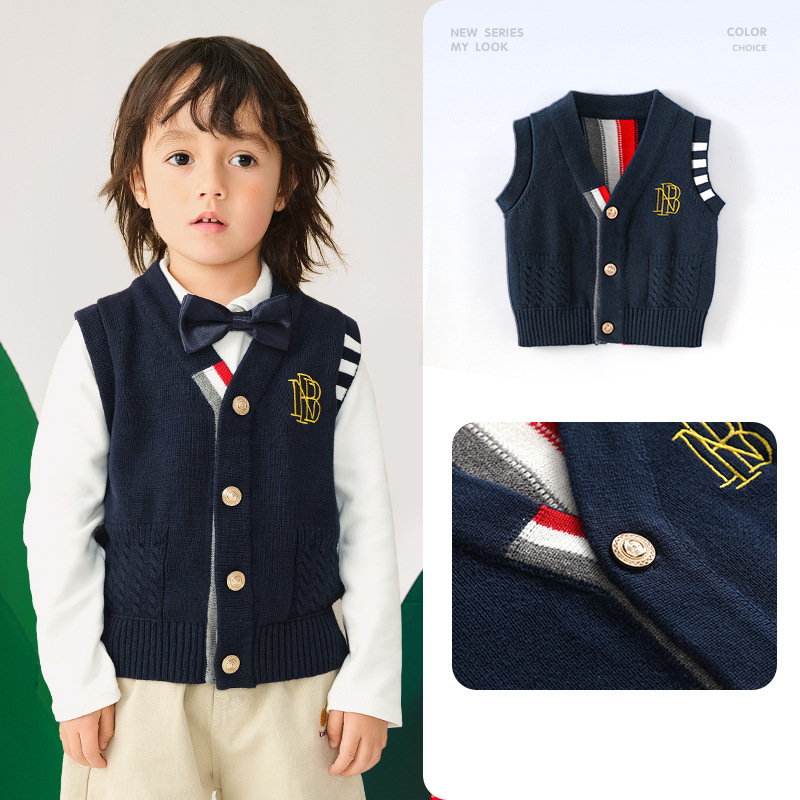 쿨와미 남아용 카디건 니트 조끼 아기 영국 스타일 조끼 유아 봄 가을용 아우터웨어 아동복 상의