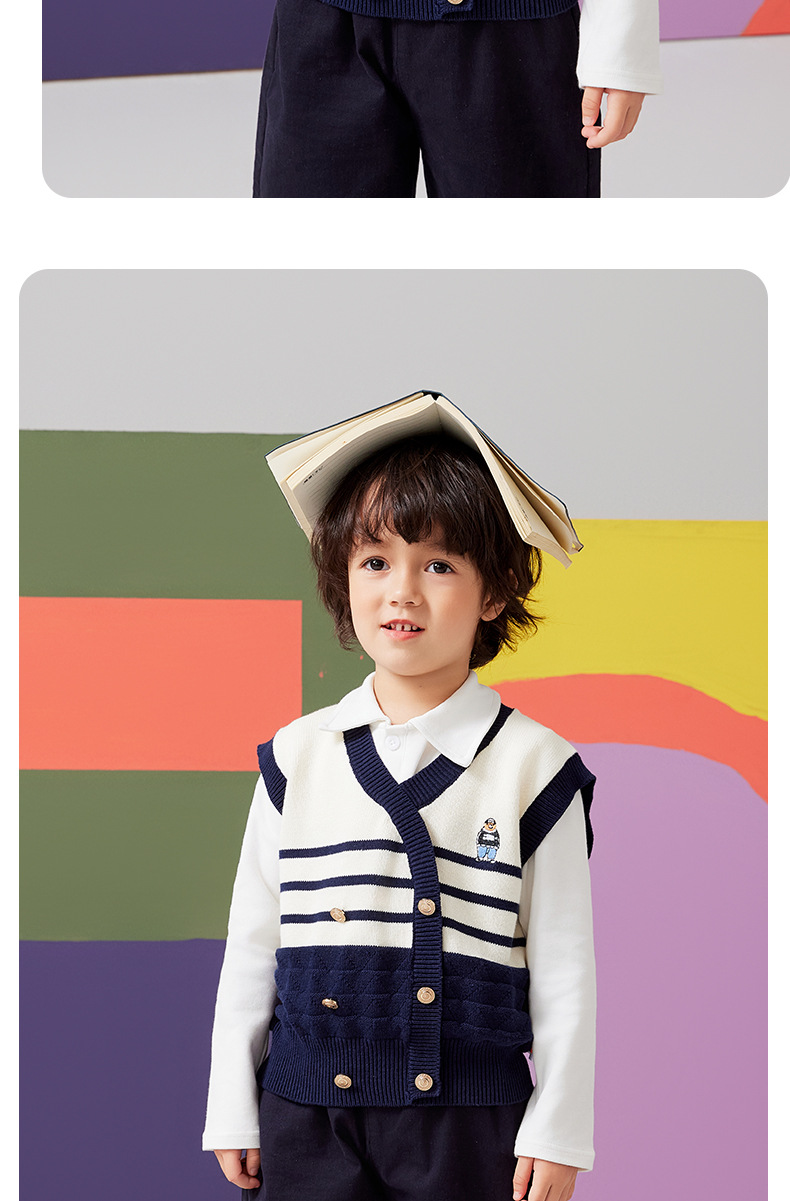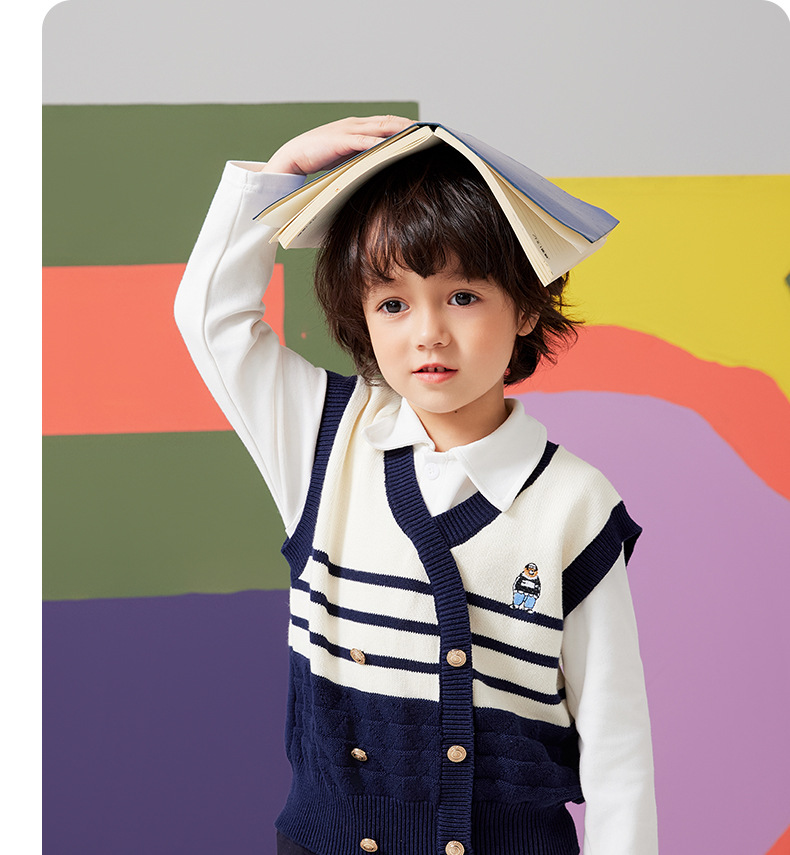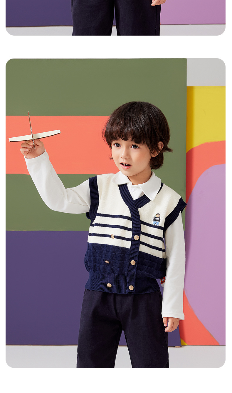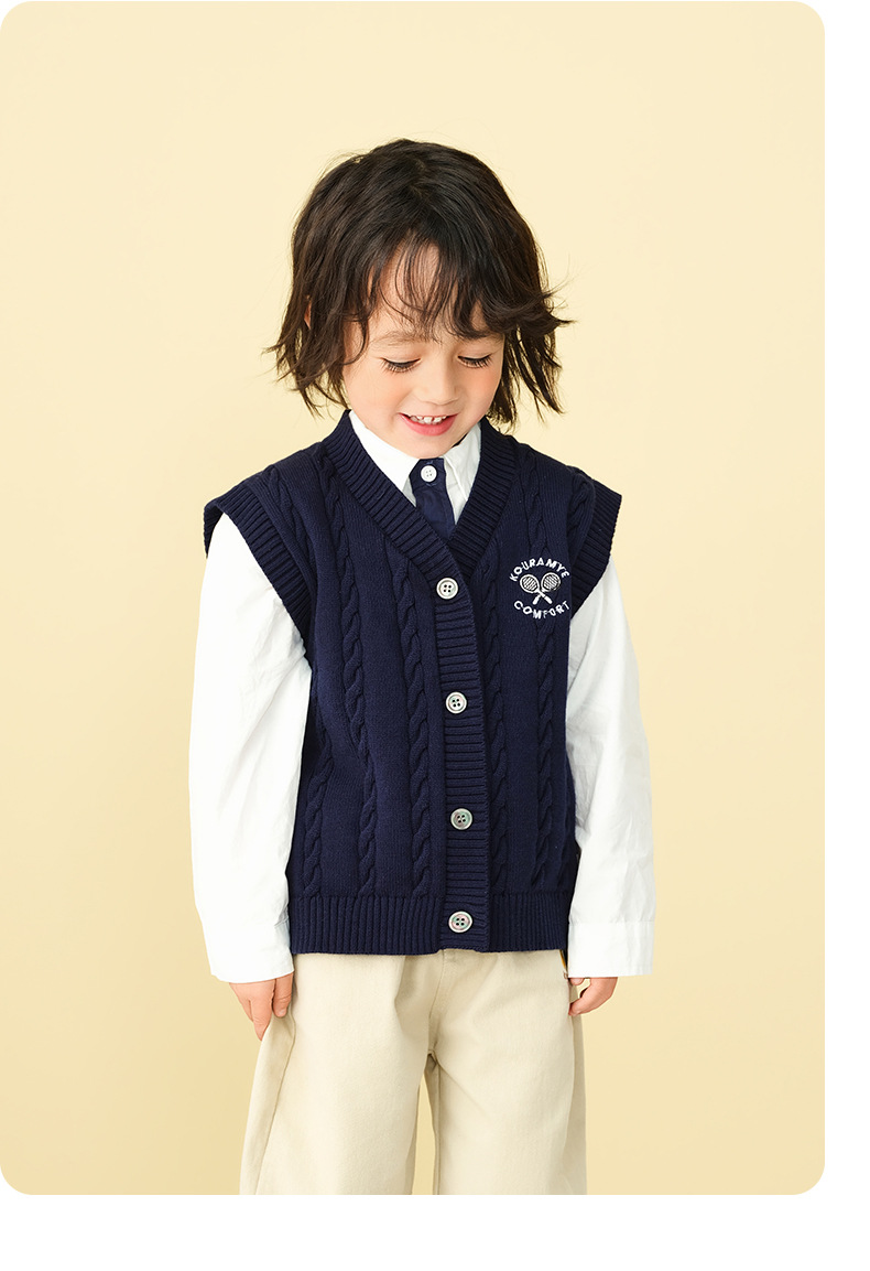 쿨와미 남아용 카디건 니트 조끼 아기 영국 스타일 조끼 유아 봄 가을용 아우터웨어 아동복 상의