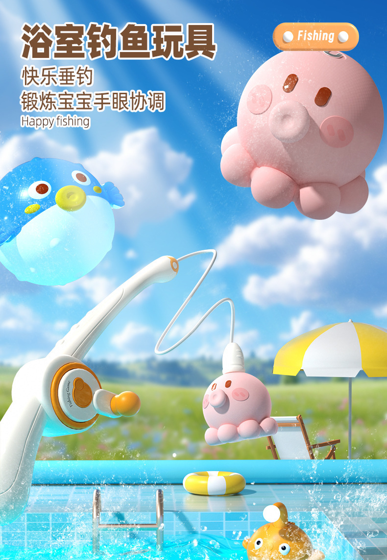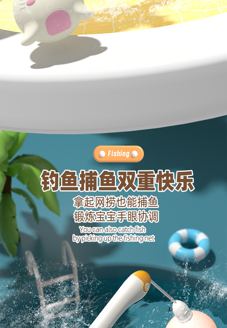 • 노란 오리 그물 낚시 + 공룡 + 유니콘 + 물고기 - 조명 없음
