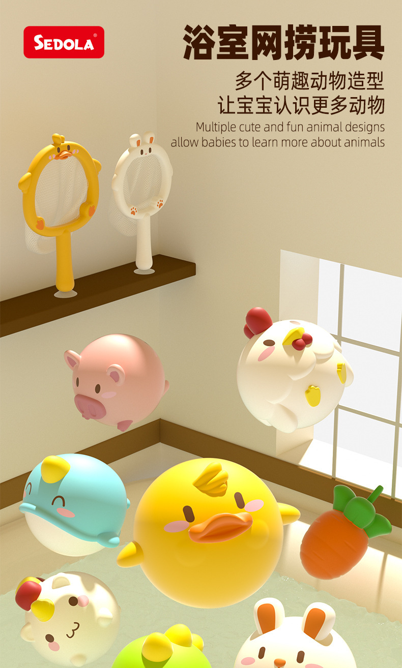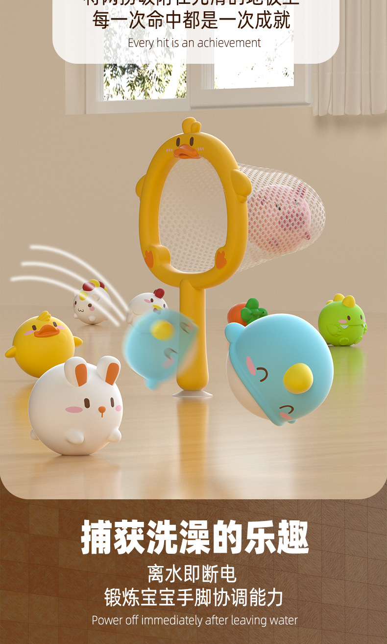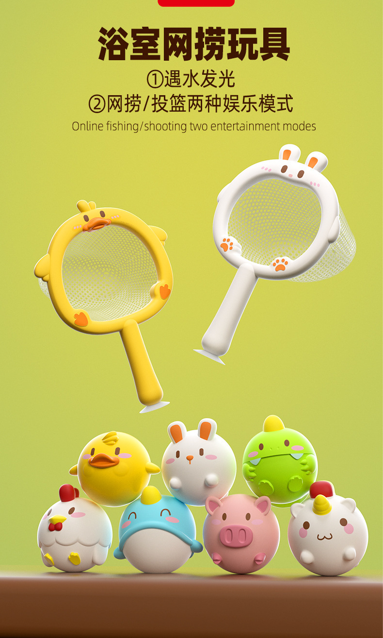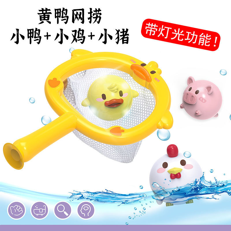 • 노란 오리 그물 낚시 + 오리 + 닭 + 돼지 - 조명 포함