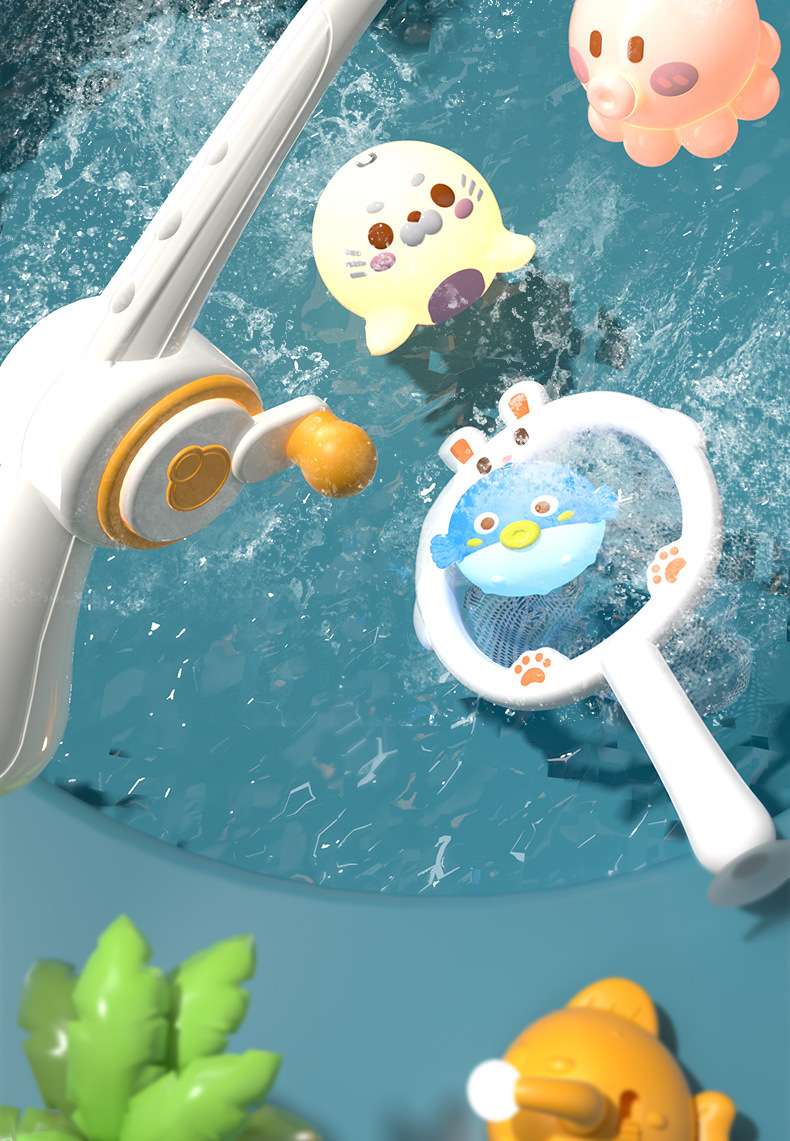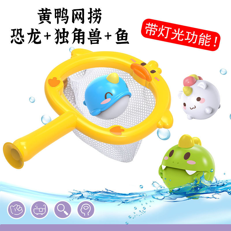 • 노란 오리 그물 낚시 + 공룡 + 유니콘 + 물고기 - 조명 포함