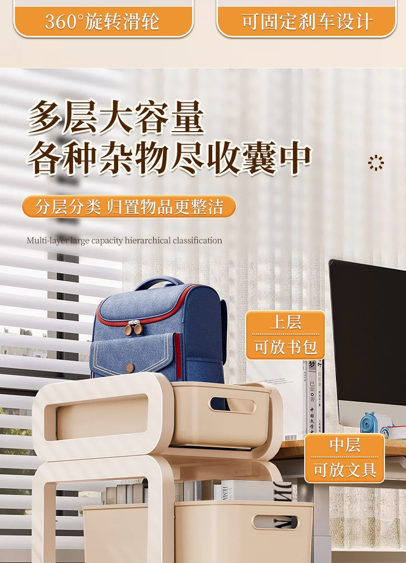 트롤리 랙 침실 거실 스낵 음료 보관 랙 학생 책가방 랙 휠 스토리지 랙