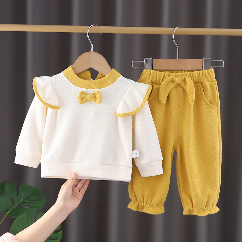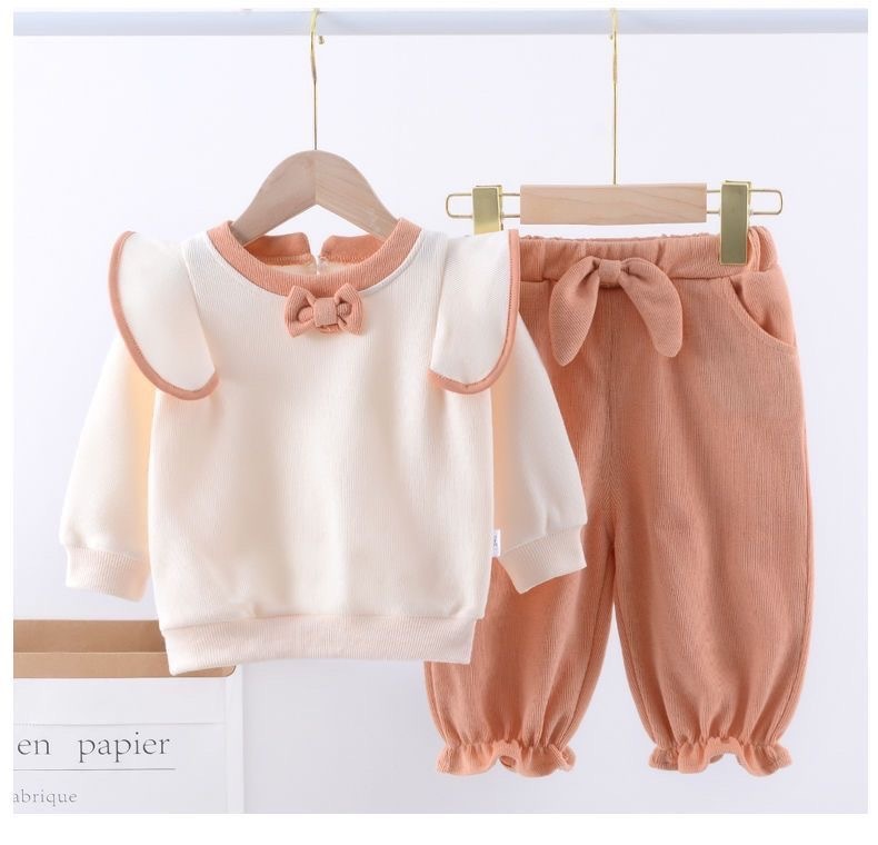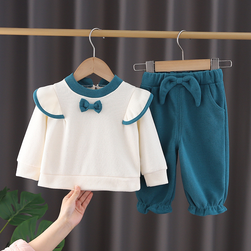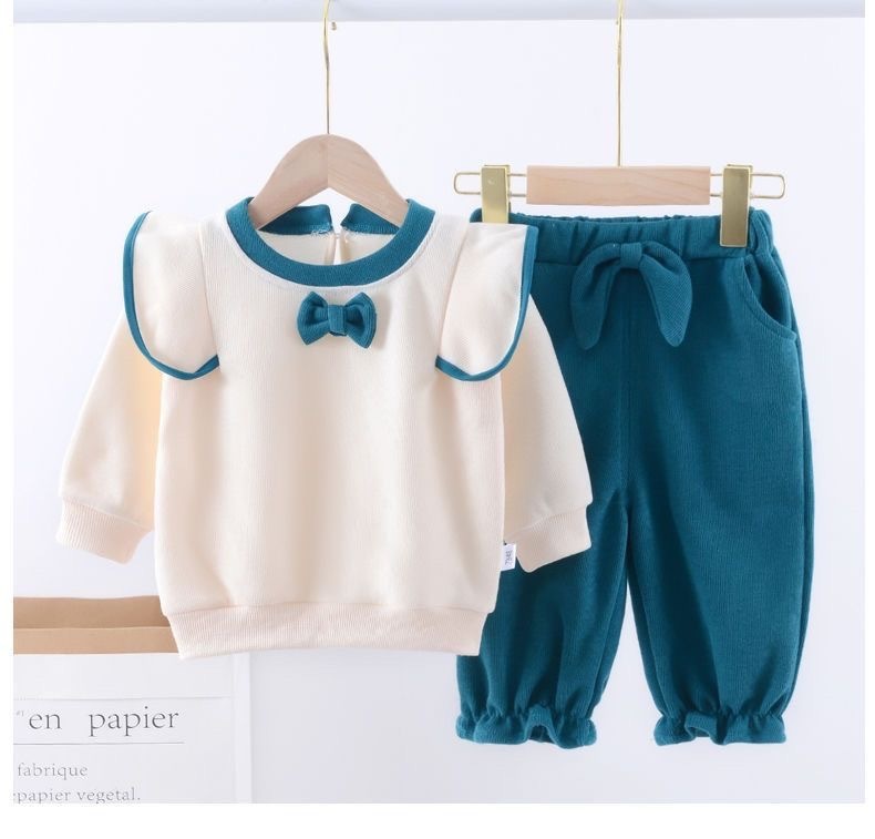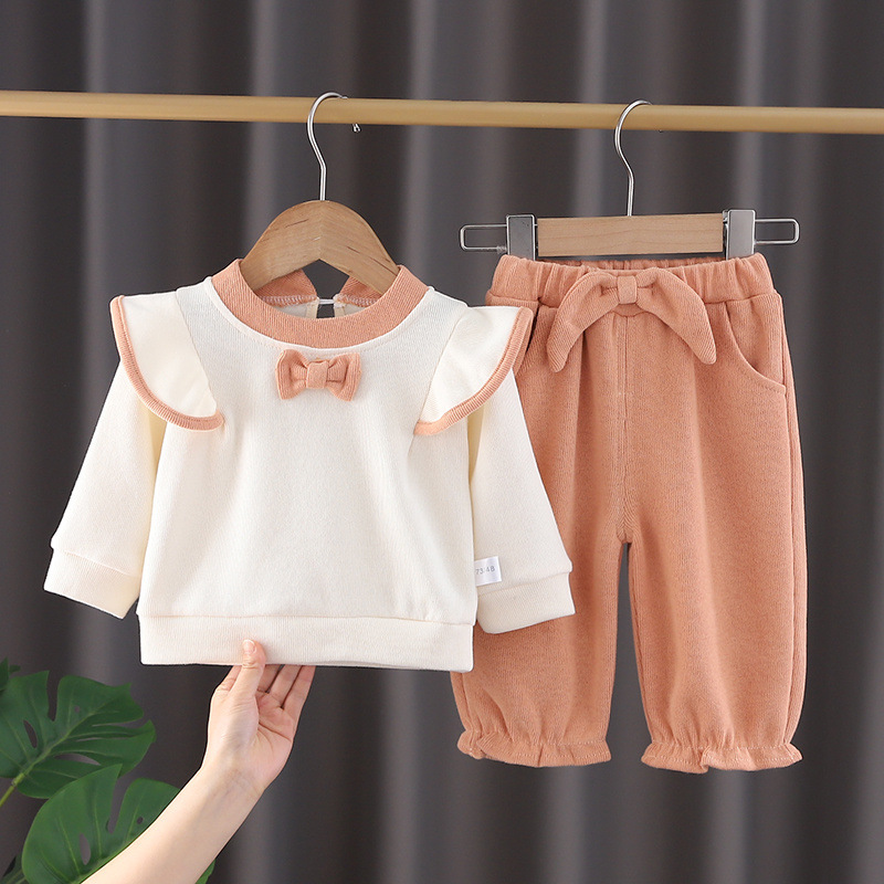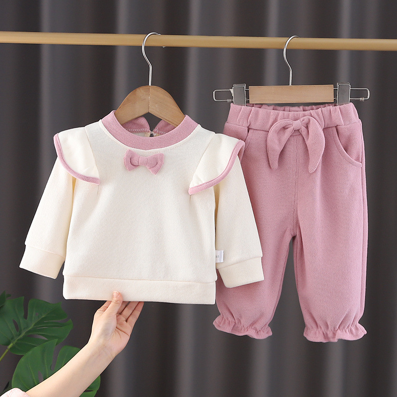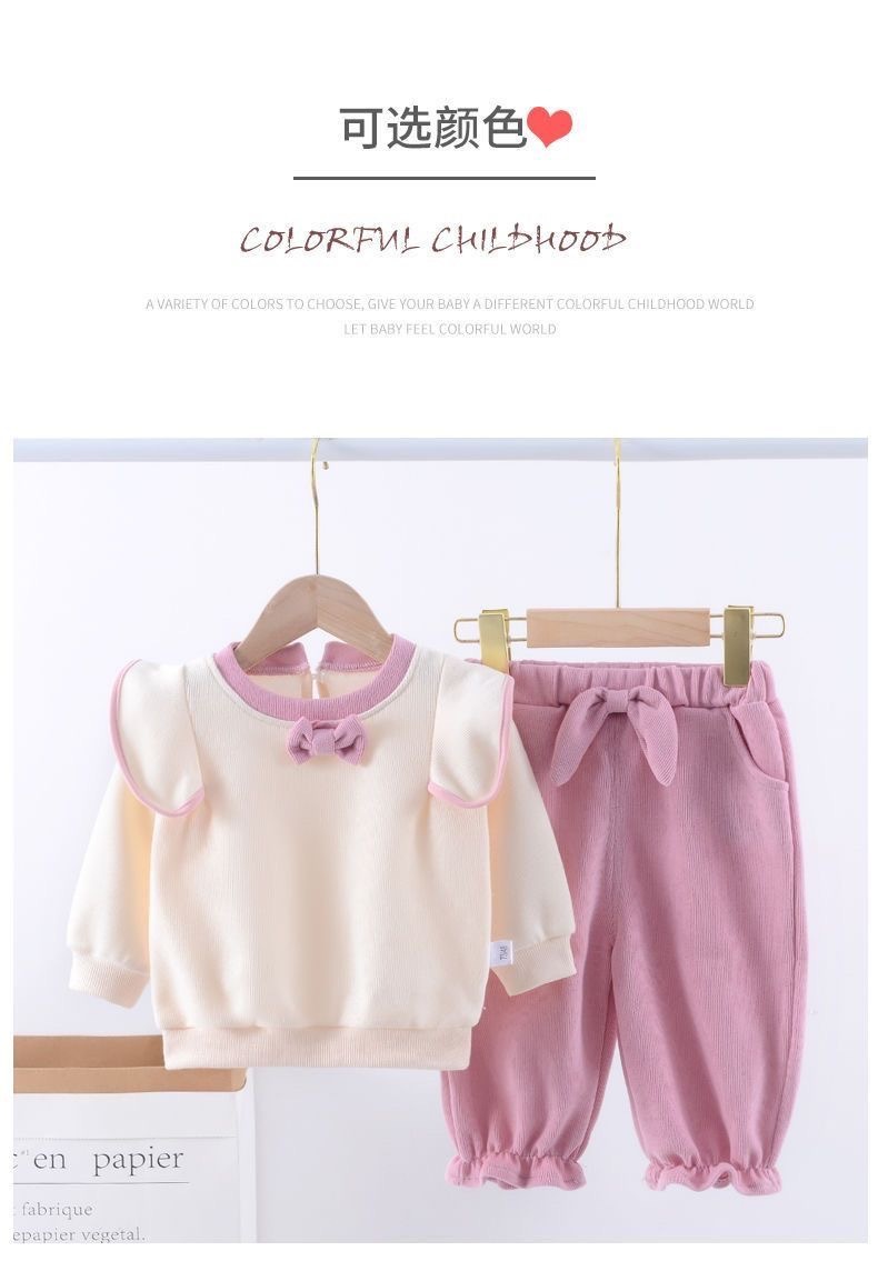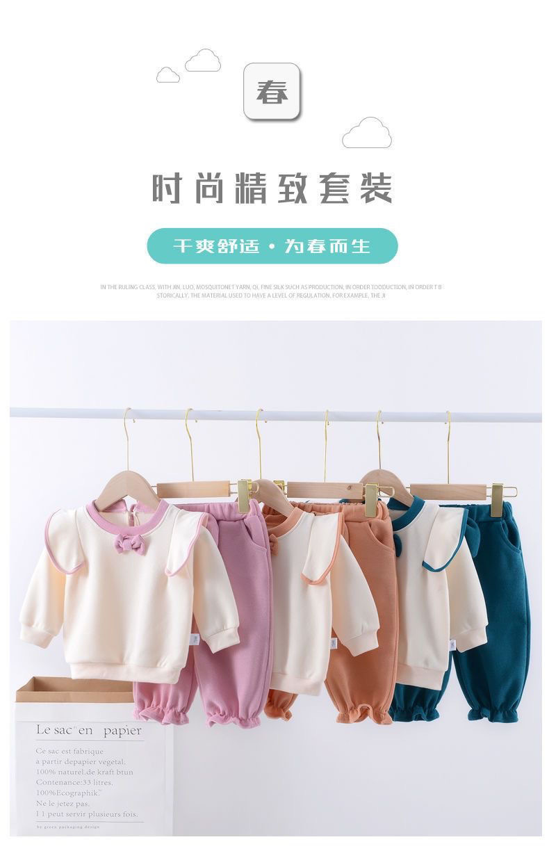 소녀 세트 봄 2024 새로운 인터넷 기념 유행 아기 소녀 캐주얼 땀 풀오버 2 피스 서양식 한국 스타일스토어 가기