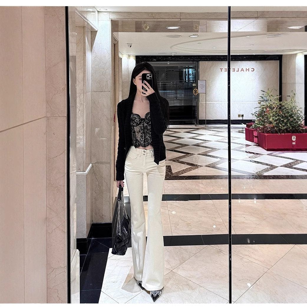 He Chenxi ~ Weila 청바지 여성용 봄 화이트 스파이스 걸스 슬림 핏 슬리밍 스트레이트 튜브 디자인 올 매치 마스터링 바지스토어 가기