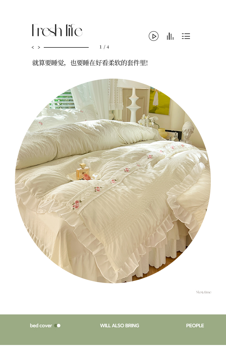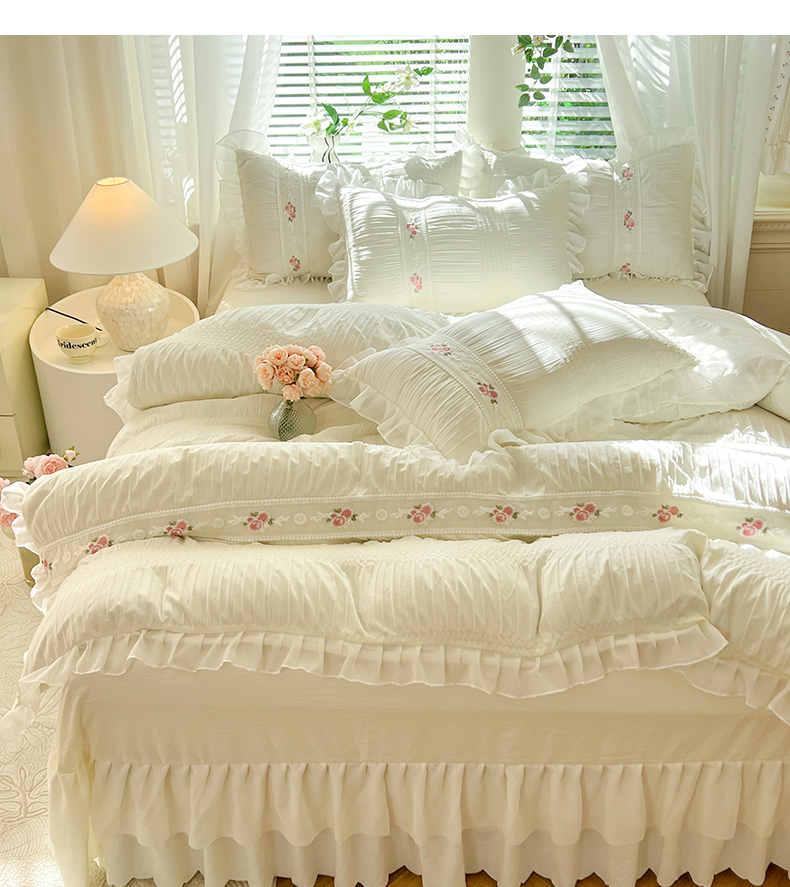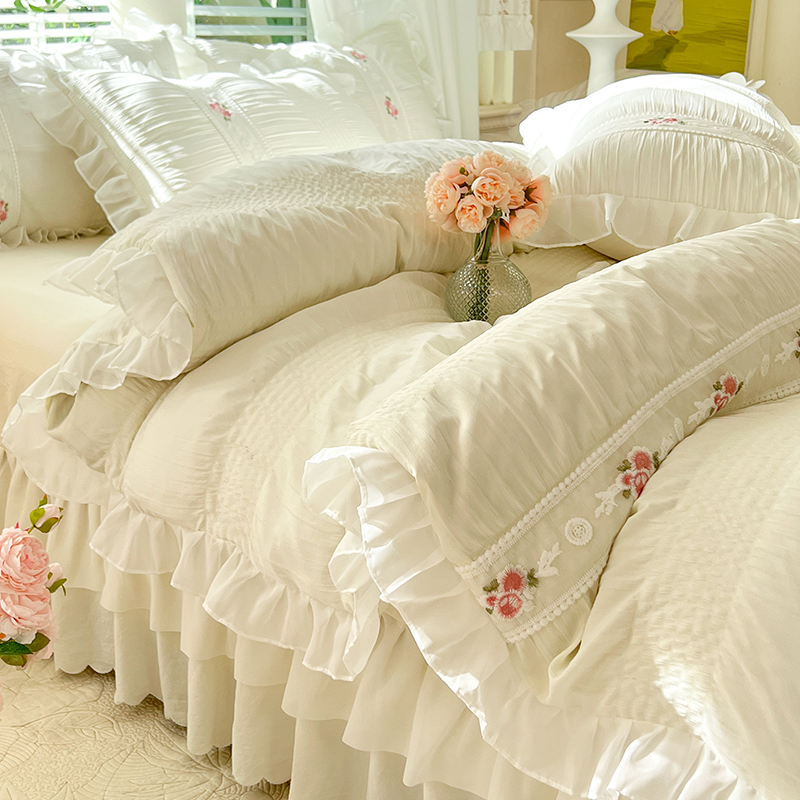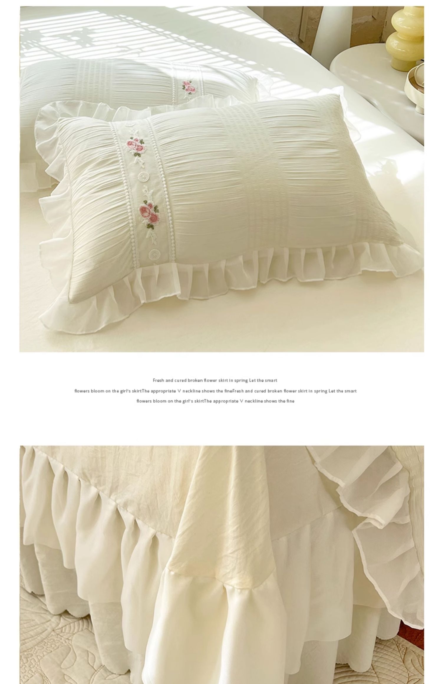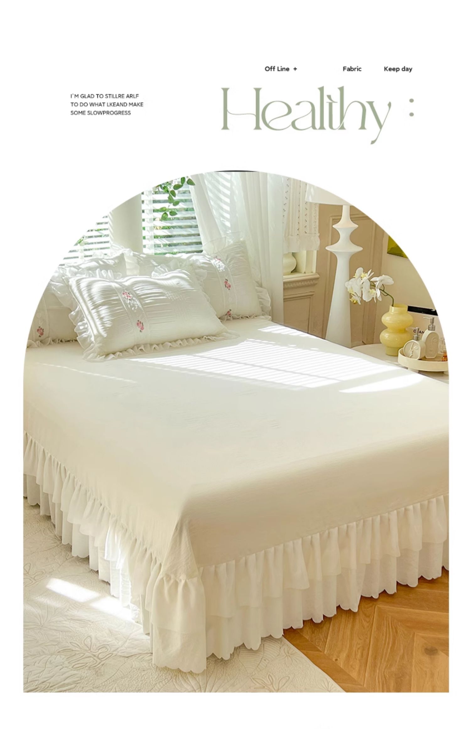 공주 스타일 시어 스커 침대 4 피스 세트 크림 요정 침대 스커트 침구 코튼 이불 커버 시트 3
