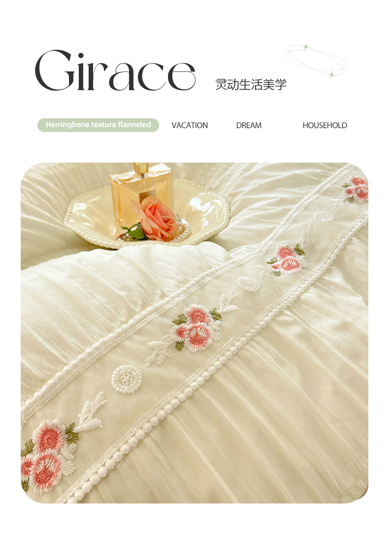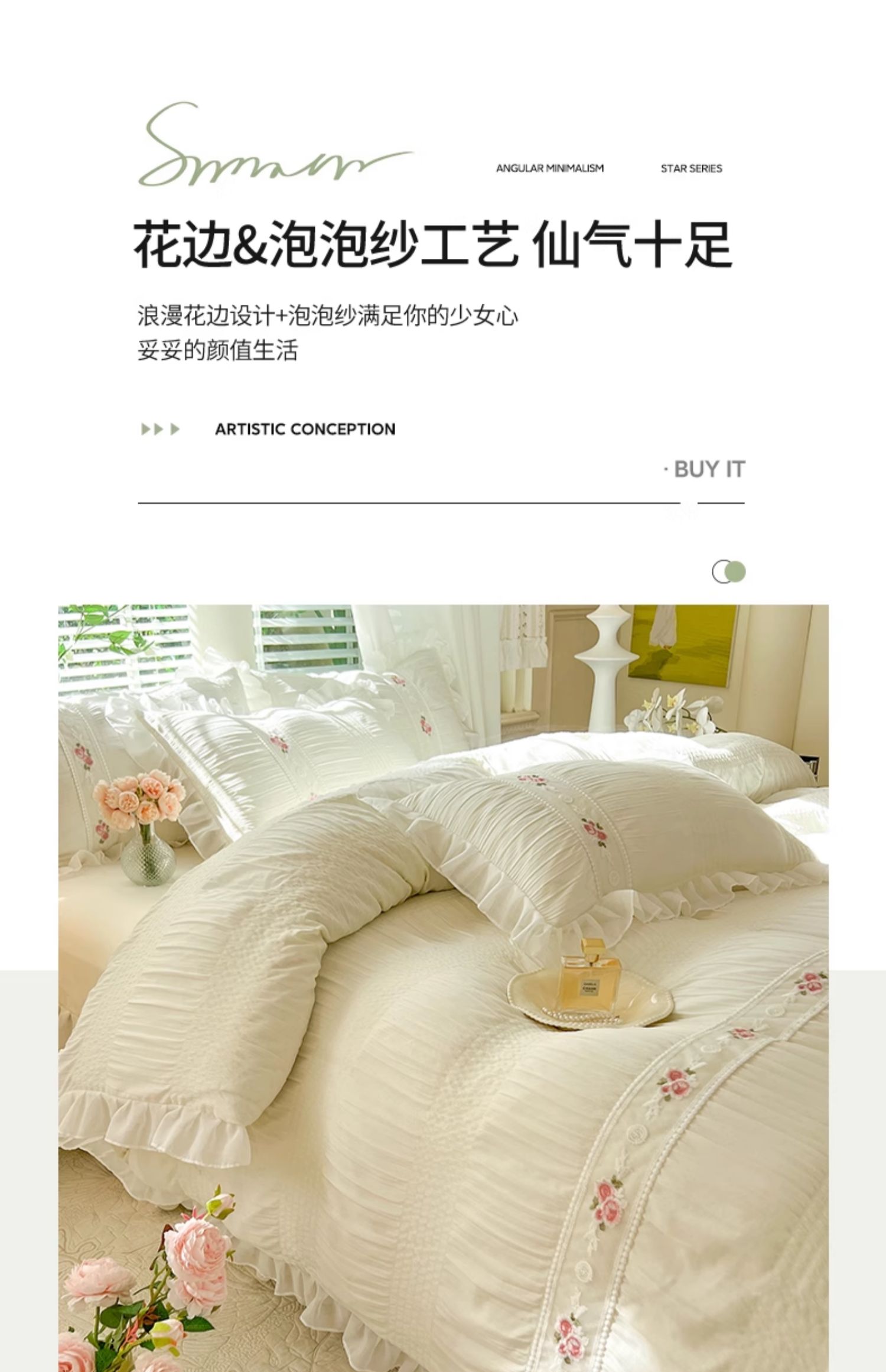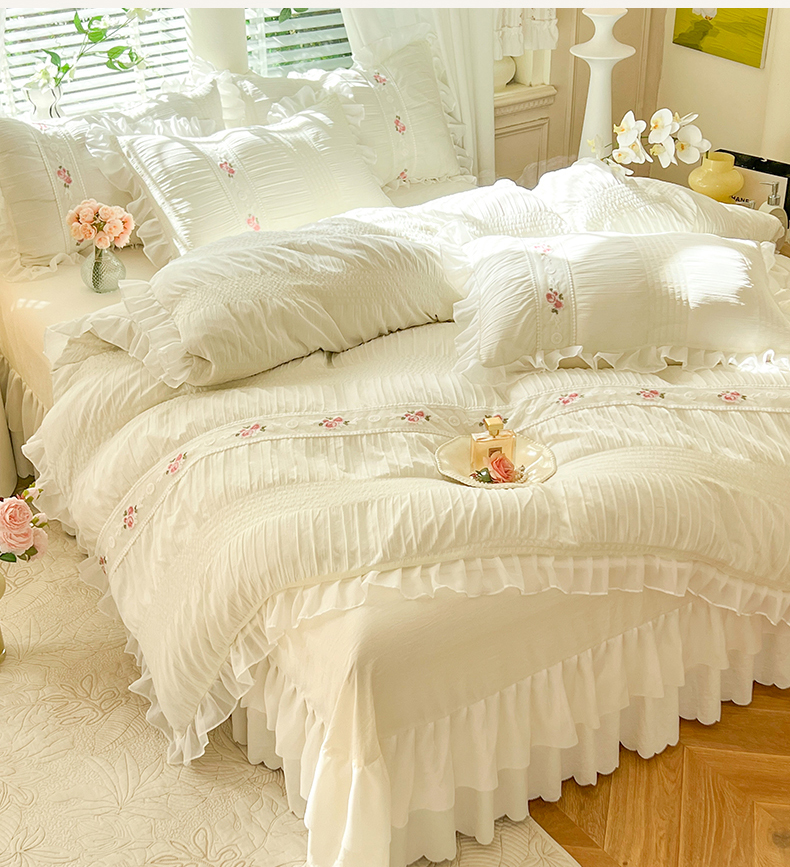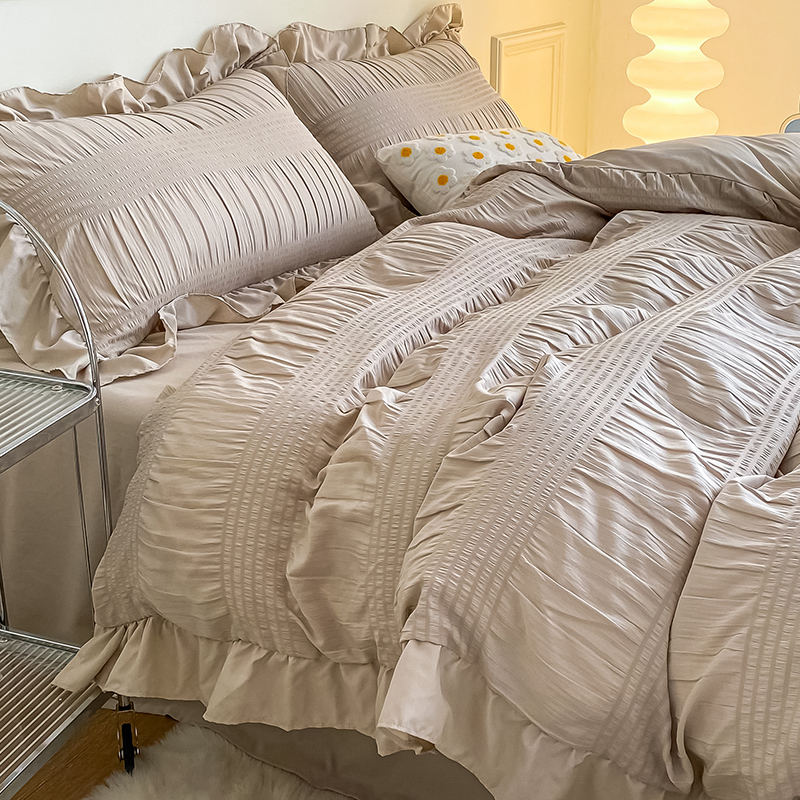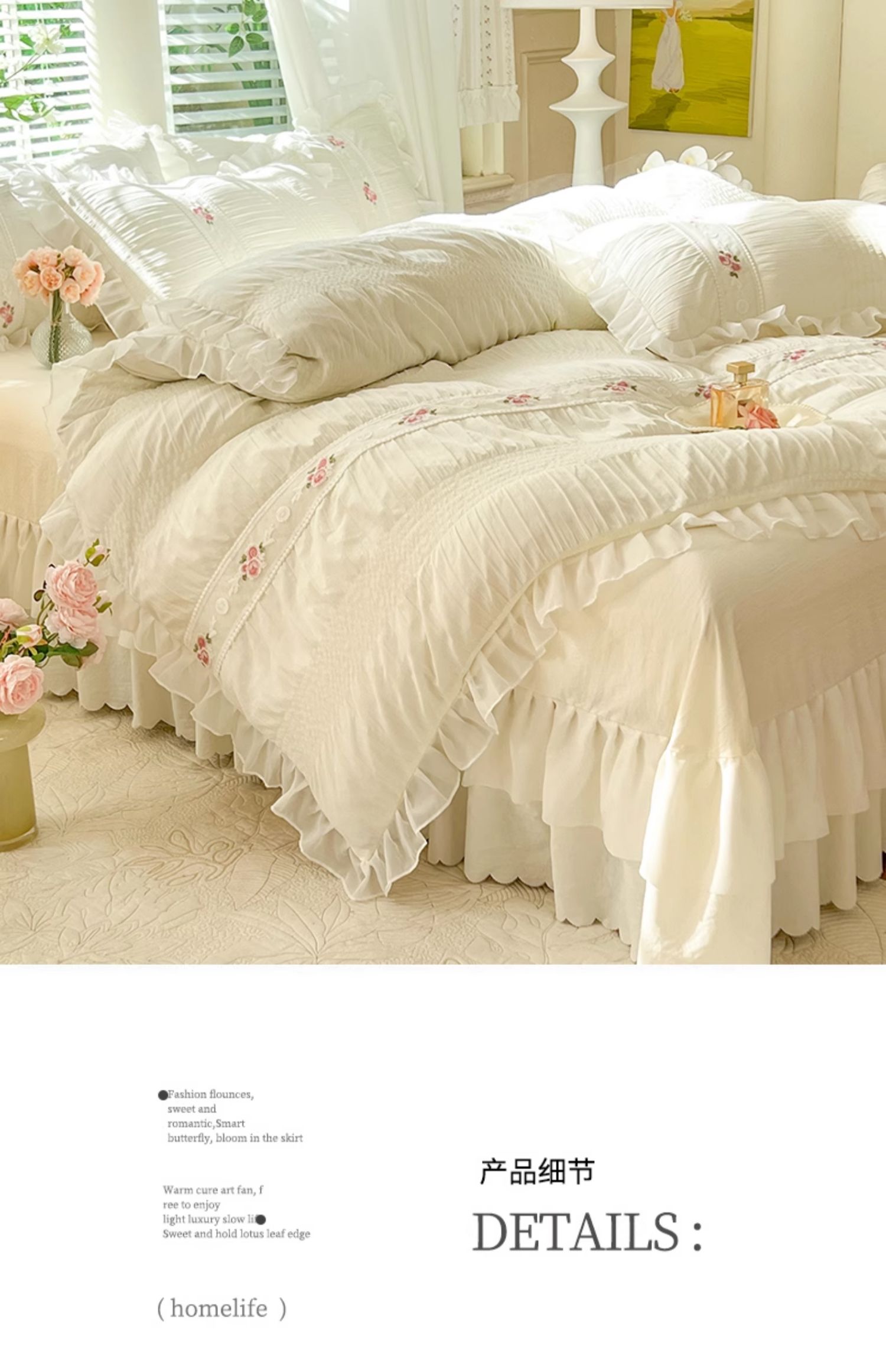 공주 스타일 시어 스커 침대 4 피스 세트 크림 요정 침대 스커트 침구 코튼 이불 커버 시트 3