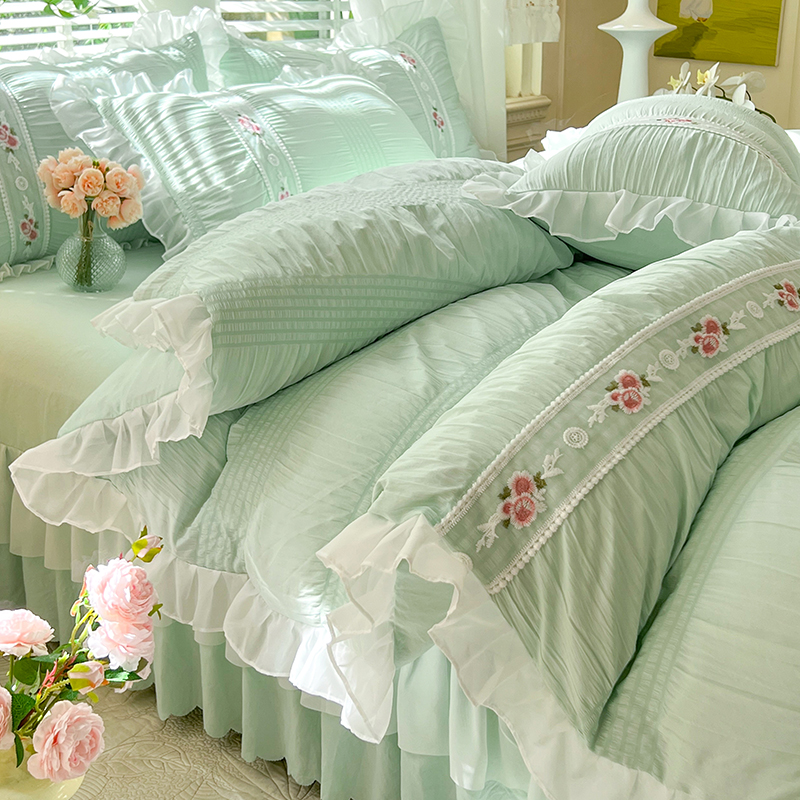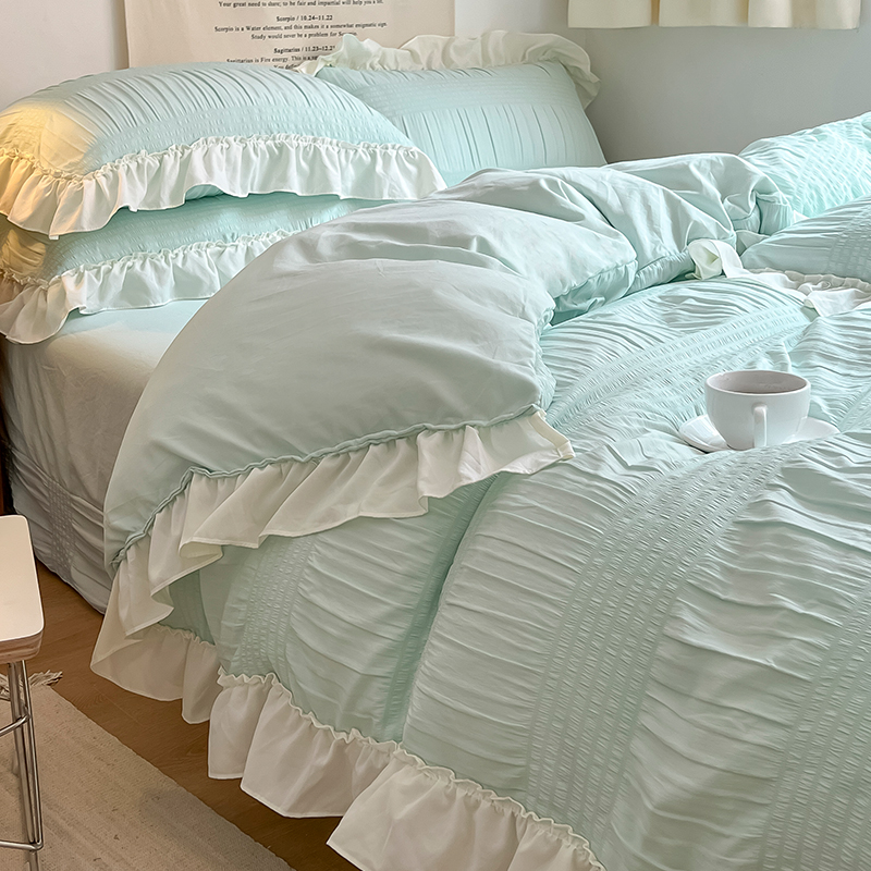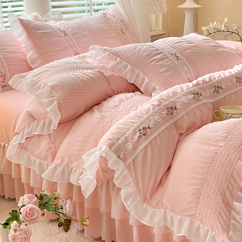 공주 스타일 시어 스커 침대 4 피스 세트 크림 요정 침대 스커트 침구 코튼 이불 커버 시트 3스토어 가기
