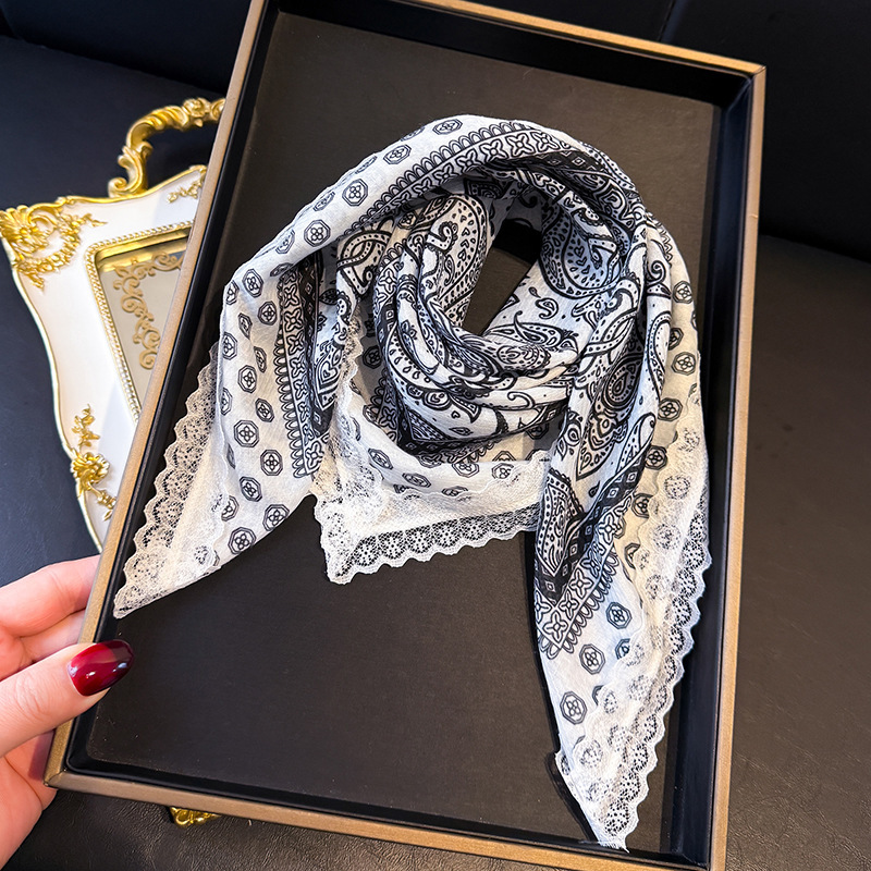 캐슈 꽃 모방 실크 스퀘어 여성 레이스 달콤한 자매 독점 패션 스카프 제조 업체 뜨거운 판매의 세대
