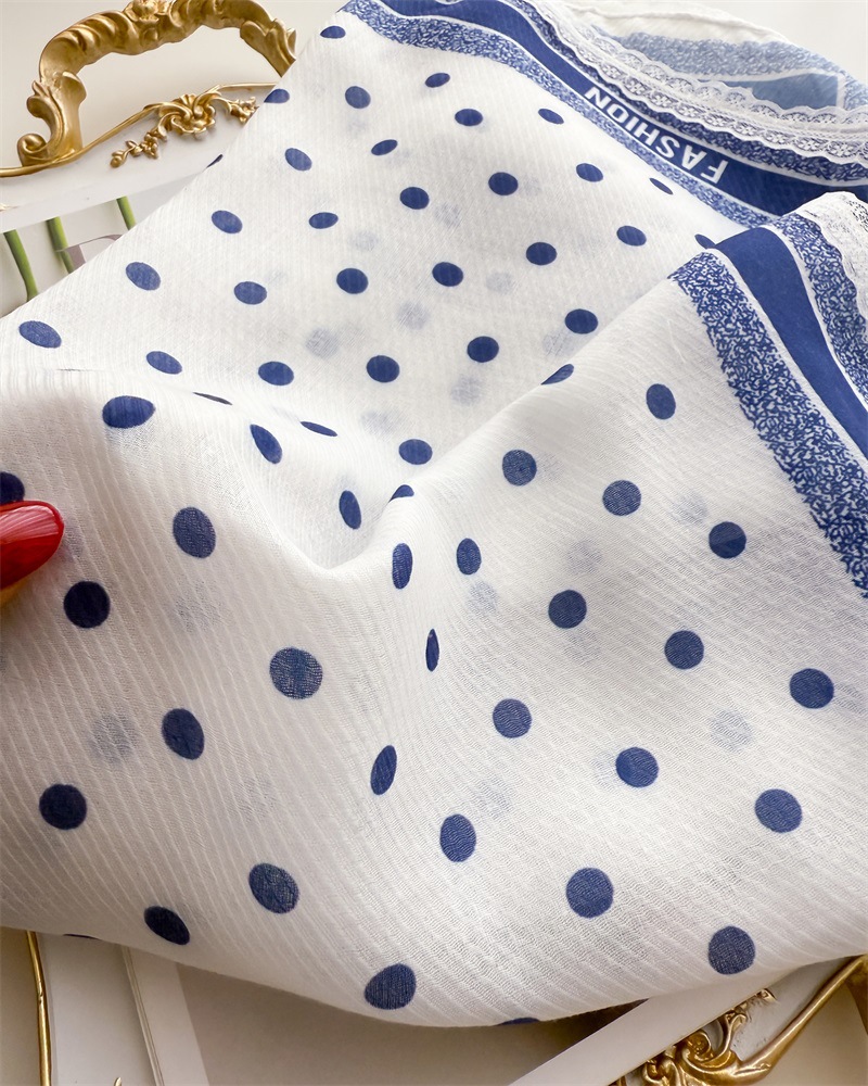 • QM000331 블루 도트 레이스 실크 스카프 344