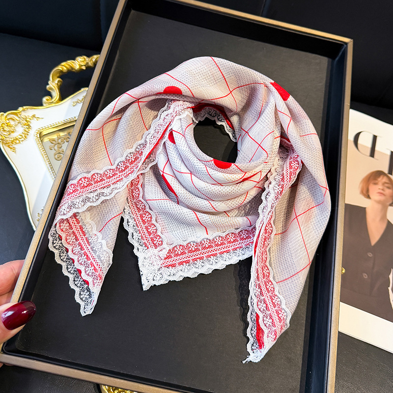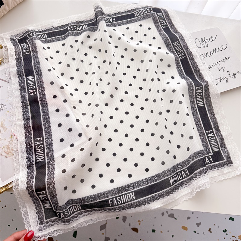 • QM000331 화이트 도트무늬 레이스 실크 스카프 33