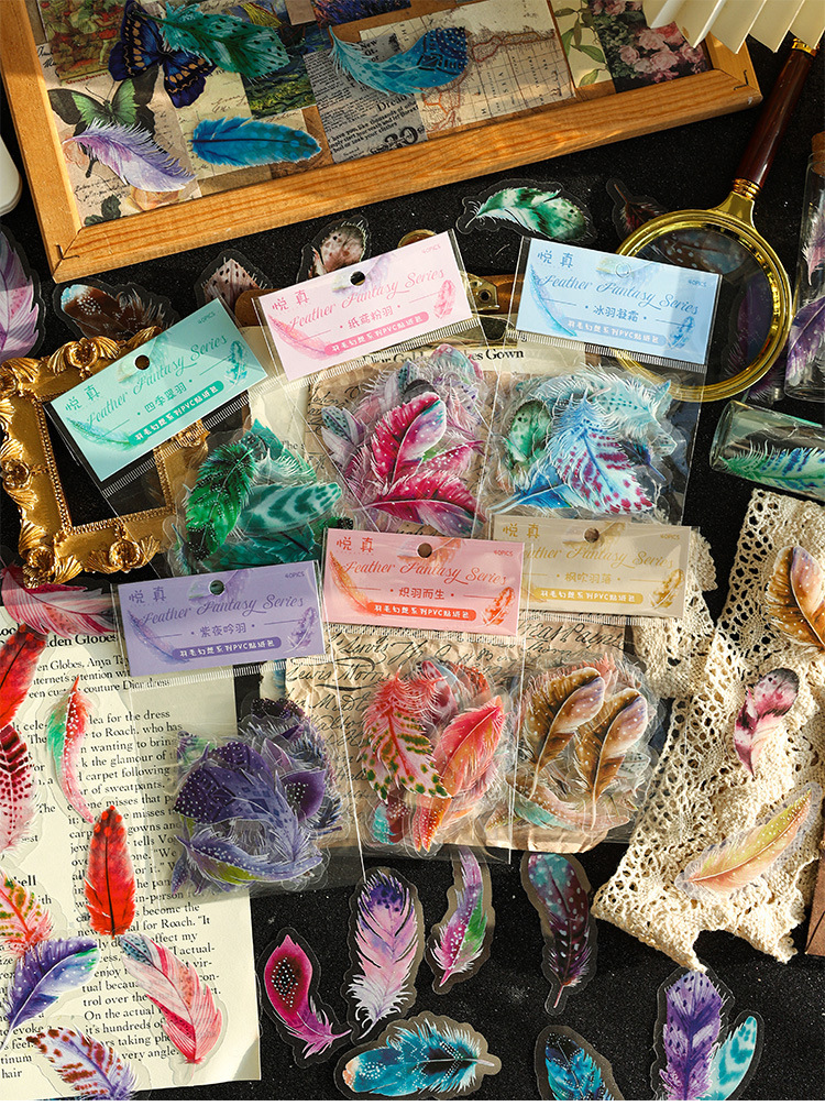 깃털 판타지 시리즈 손 계정 스티커 귀여운 어린이 손 계정 스티커 pvc 소재 40 공장 도매스토어 가기