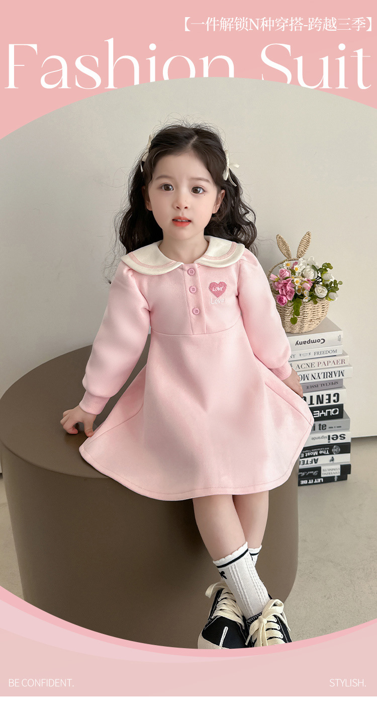 소녀 봄 원피스 2025 새로운 서양식 아기 소녀 봄 원피스 어린이 유행 인형 칼라 공주 원피스스토어 가기