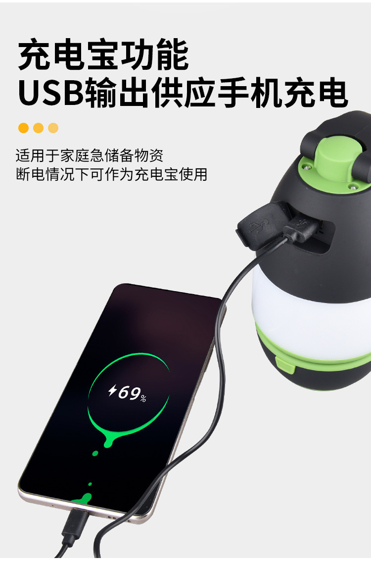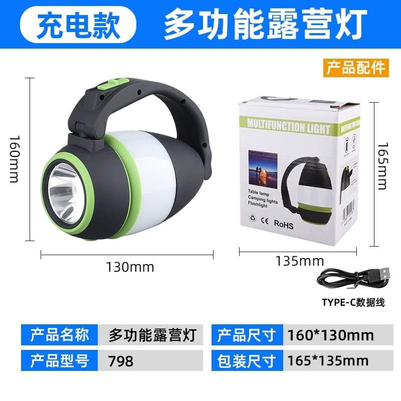 • 업그레이드된 다기능 캠핑 램프 충전식 버전 - 녹색