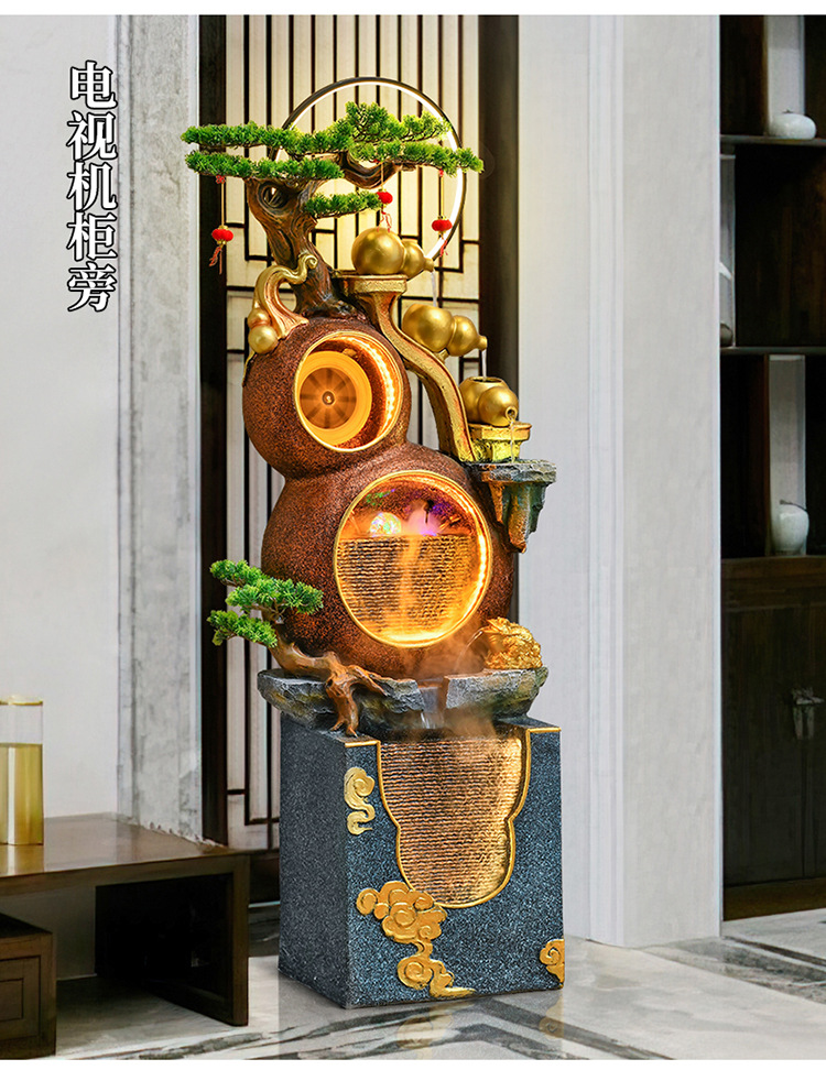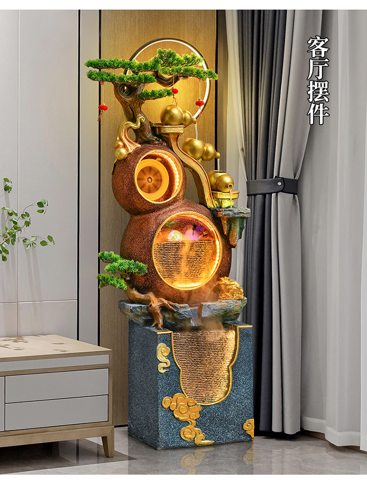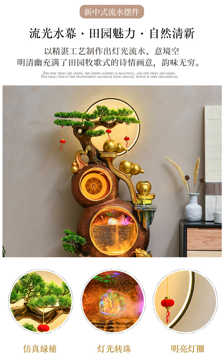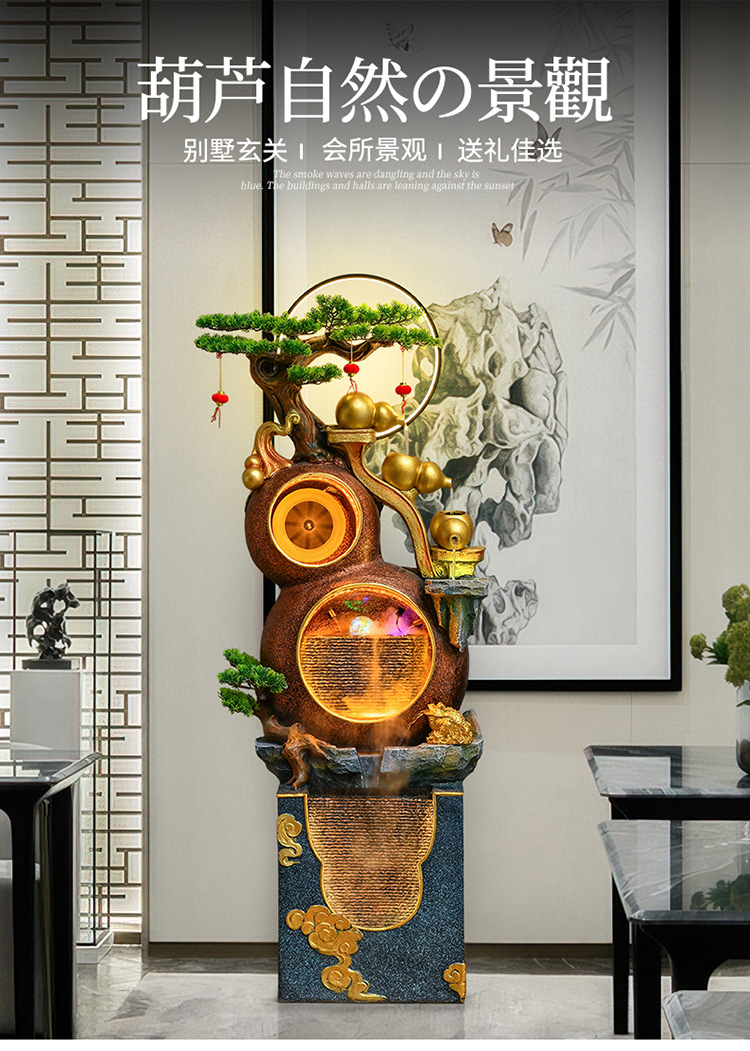 개업 및 집들이 선물, 호리병 모양 거실 장식품, 사무실 행운 장식품, 물 흐름이 돈을 가져다주는 장식품, 순환수 조경 분수 장식