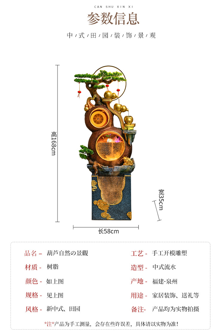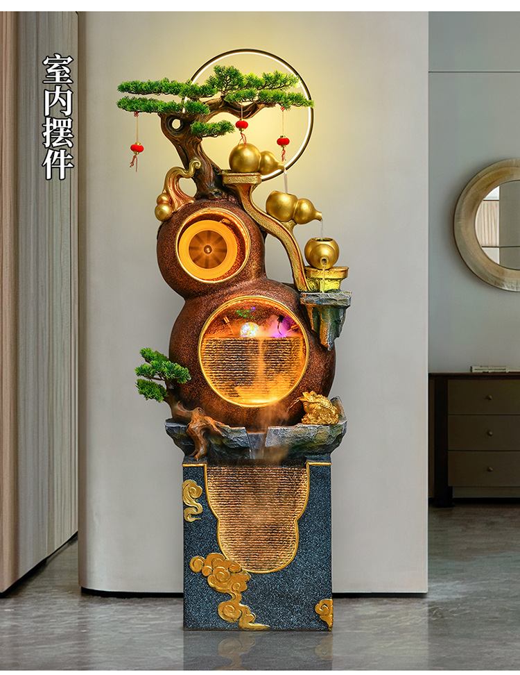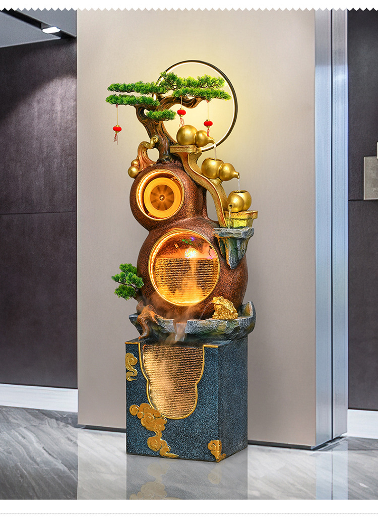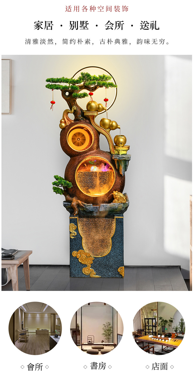 개업 및 집들이 선물, 호리병 모양 거실 장식품, 사무실 행운 장식품, 물 흐름이 돈을 가져다주는 장식품, 순환수 조경 분수 장식