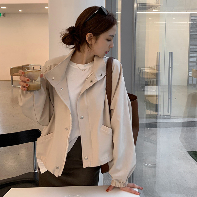 2025 년 이른 봄 가을 새로운 얇은 폭행 재킷 여성 올해 인기 폭발 단색 느슨한 재킷 탑