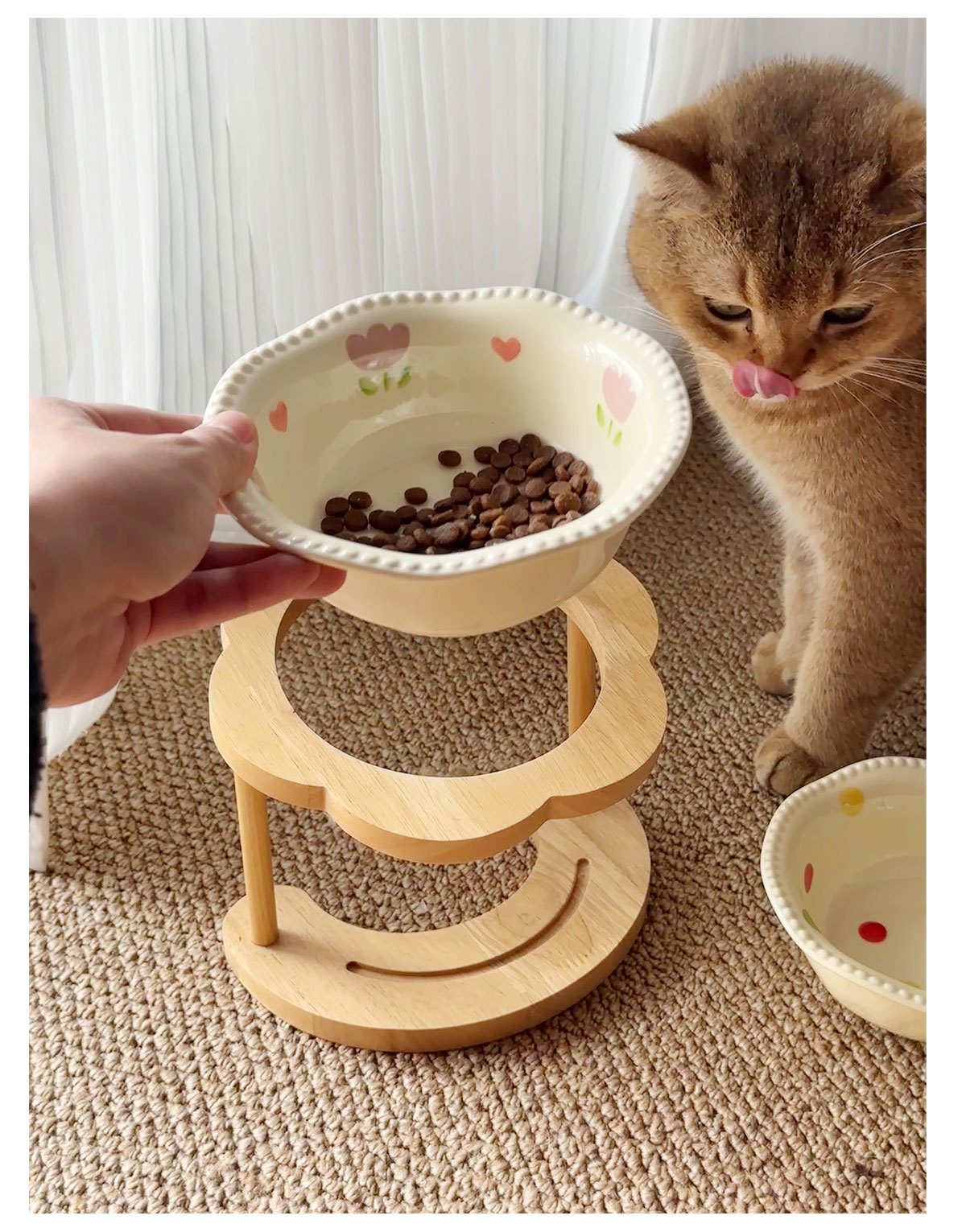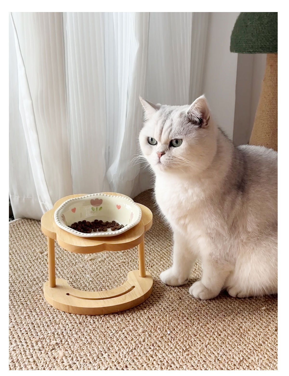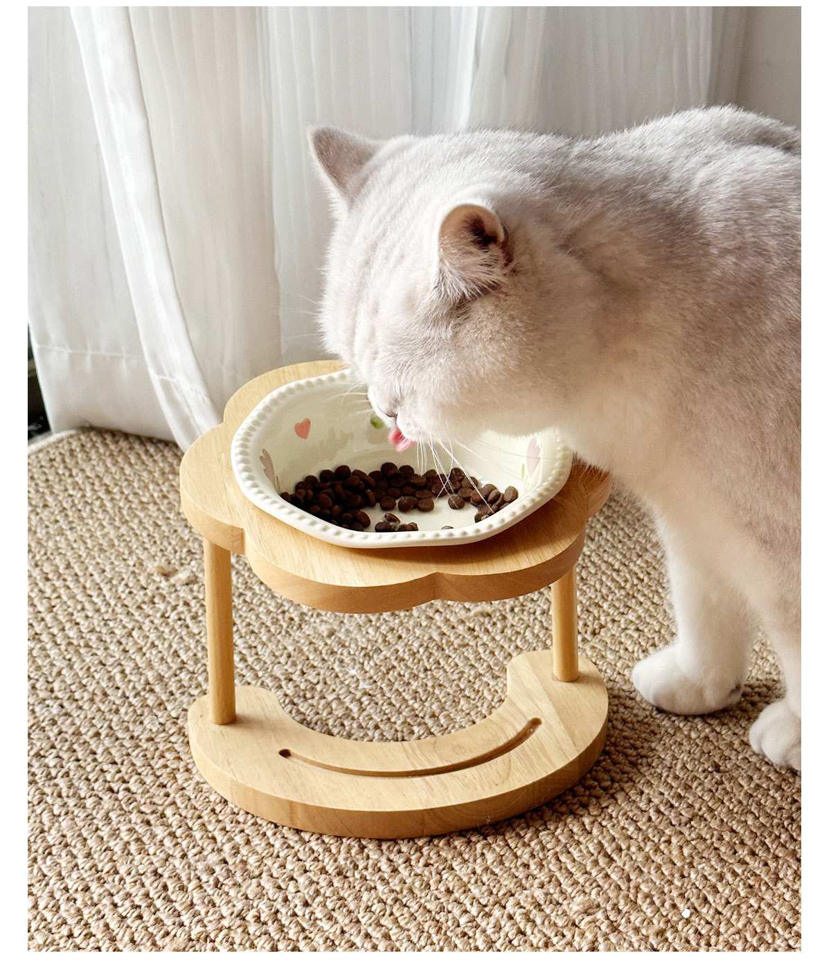 고양이 그릇 고양이 세라믹 그릇 높은 다리 나무 프레임 보호 자궁 경부 척추 개 음식 그릇 고양이 먹이 그릇 반대로 뒤집는 애완 동물 그릇