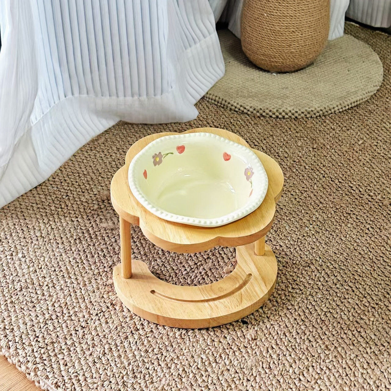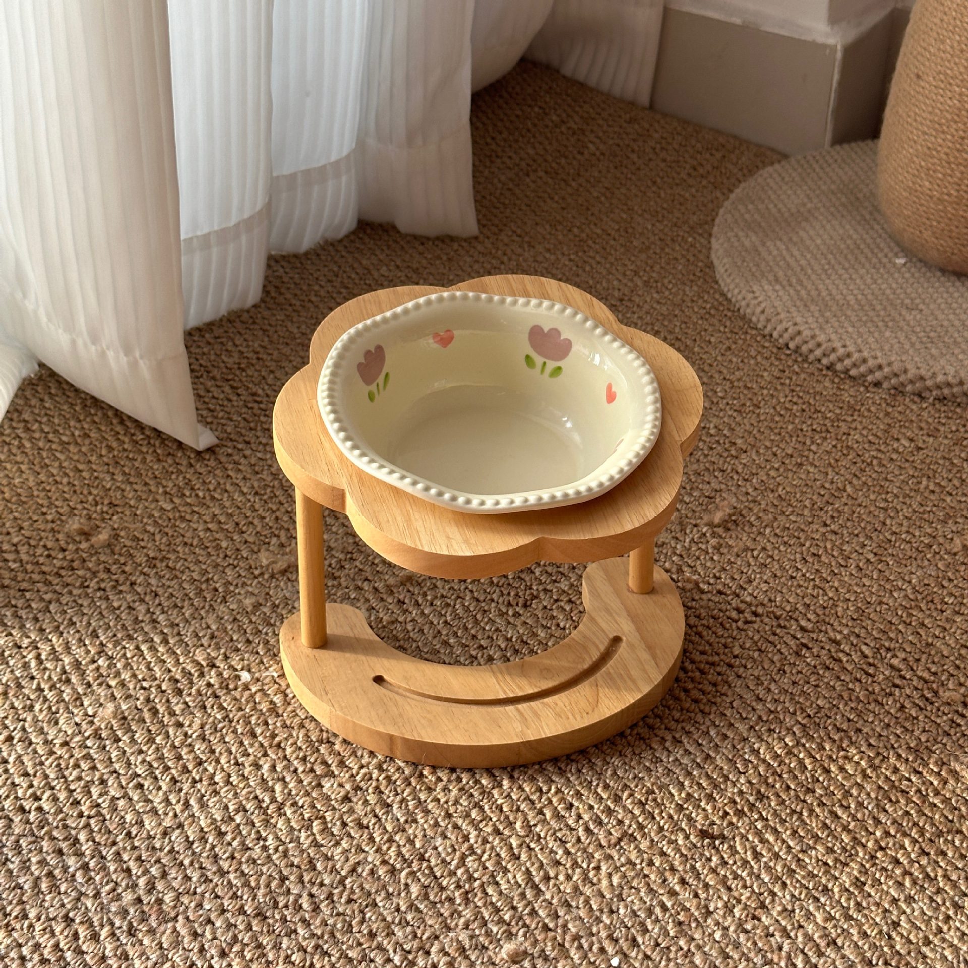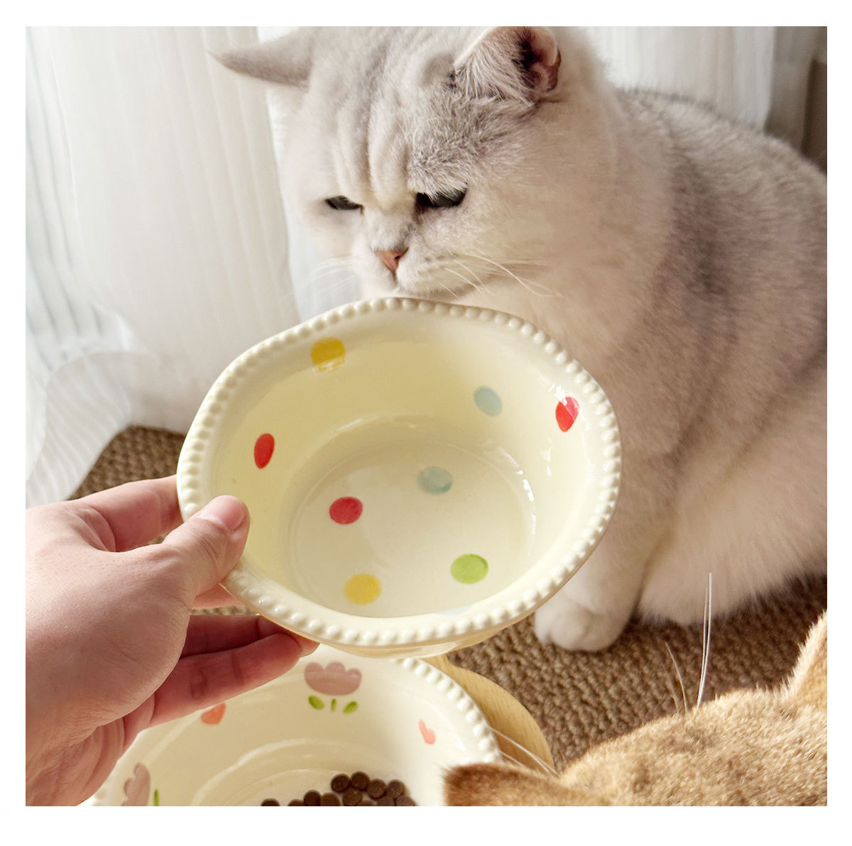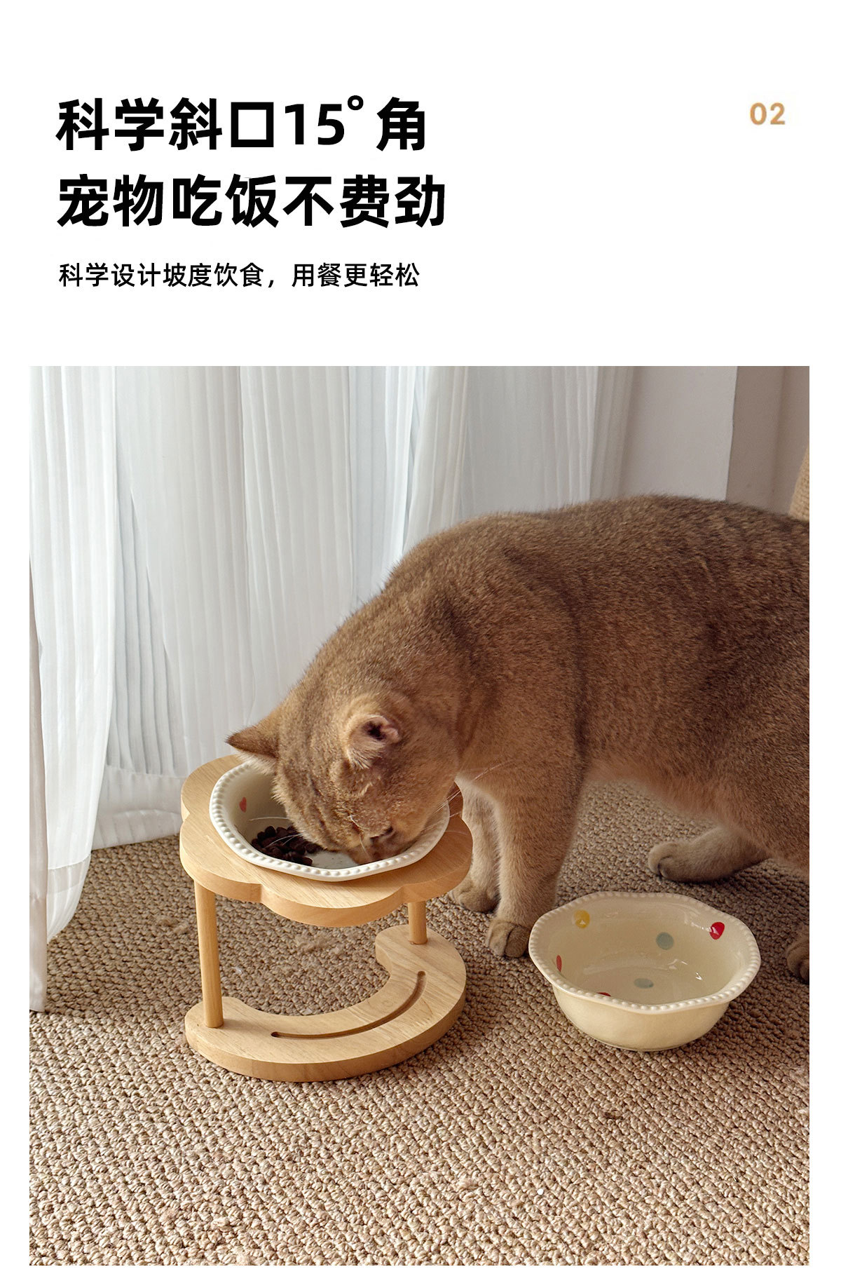 고양이 그릇 고양이 세라믹 그릇 높은 다리 나무 프레임 보호 자궁 경부 척추 개 음식 그릇 고양이 먹이 그릇 반대로 뒤집는 애완 동물 그릇