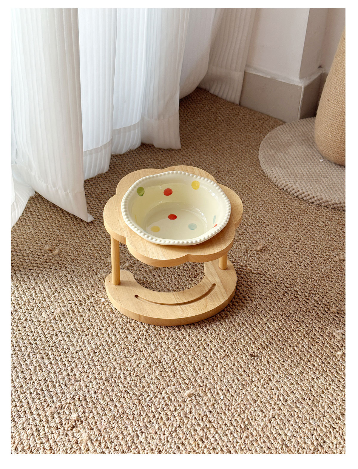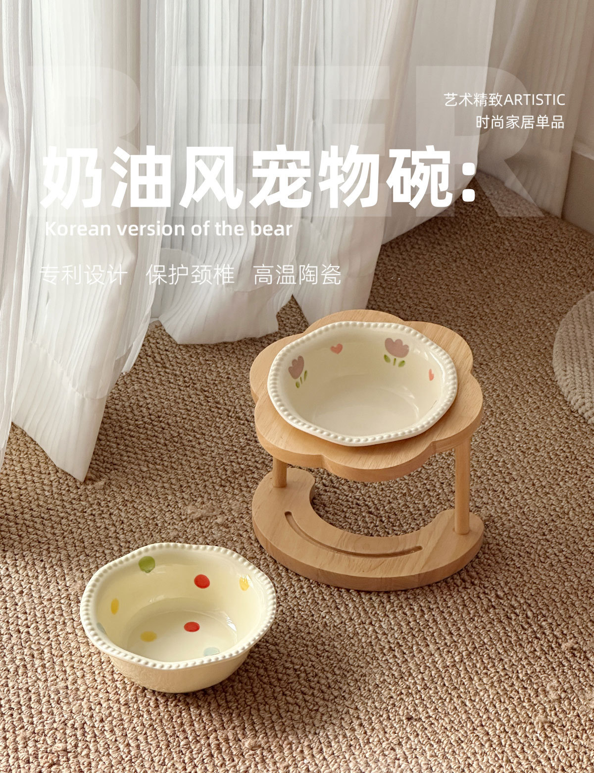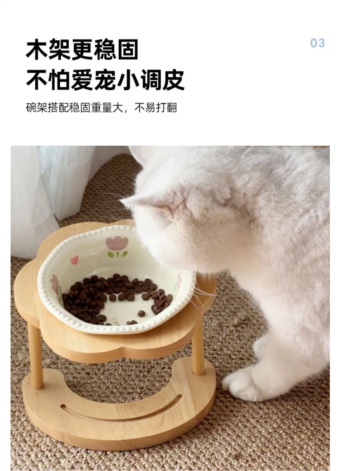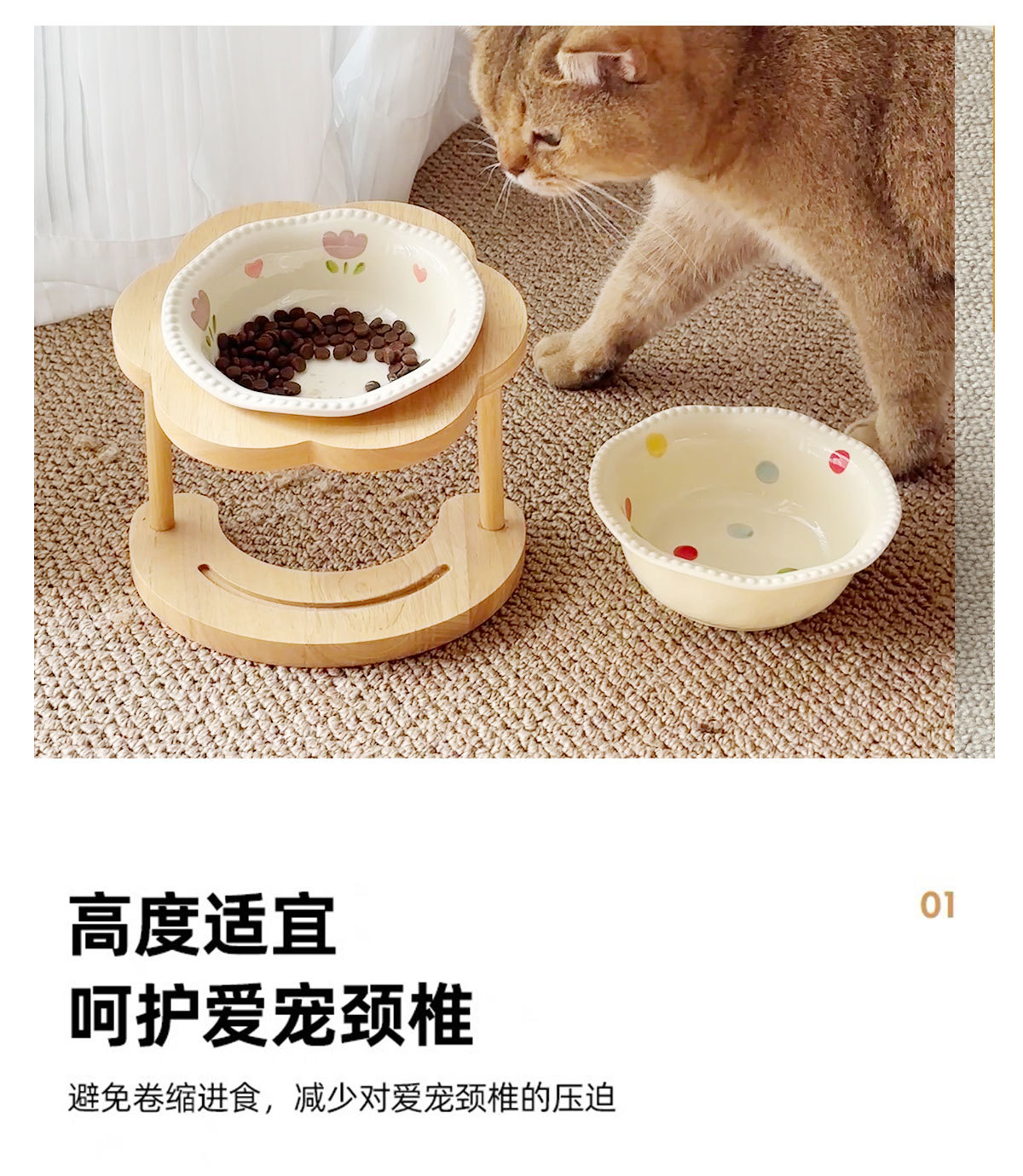 고양이 그릇 고양이 세라믹 그릇 높은 다리 나무 프레임 보호 자궁 경부 척추 개 음식 그릇 고양이 먹이 그릇 반대로 뒤집는 애완 동물 그릇스토어 가기
