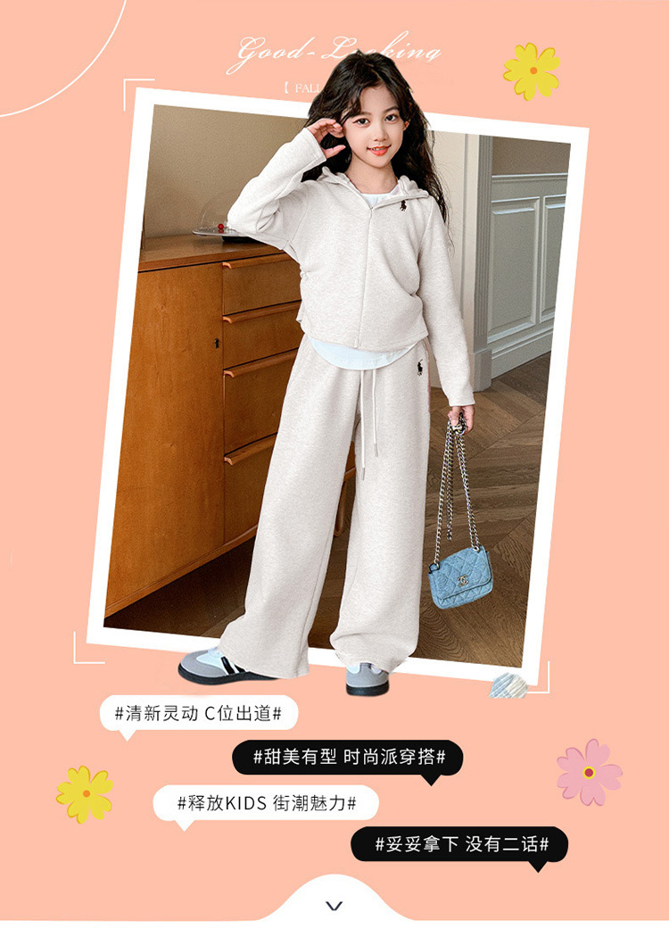 소녀의 봄 세트 2025 새로운 소녀의 봄과 가을 후드 땀 어린이 봄 넓은 다리 바지 투피스 세트스토어 가기