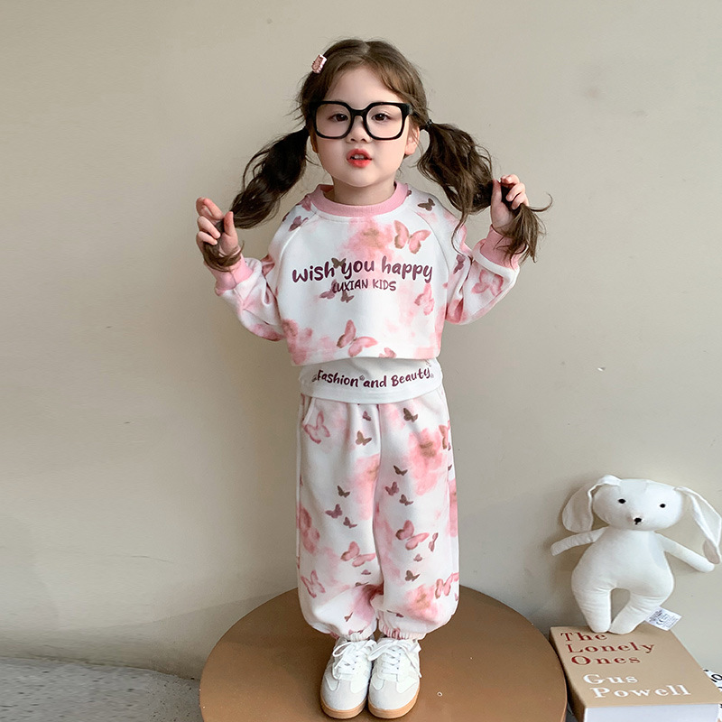 소녀의 한국식 세트 봄과 가을 소녀의 넥타이 염색 땀 봄 원피스 소녀의 유행 3 종 세트스토어 가기