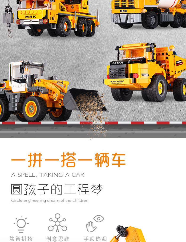 Xingbao 빌딩 블록 도구 작동 차량 지게차 불도저 굴삭기 시리즈 작은 입자 조립 퍼즐 빌딩 블록 장난감