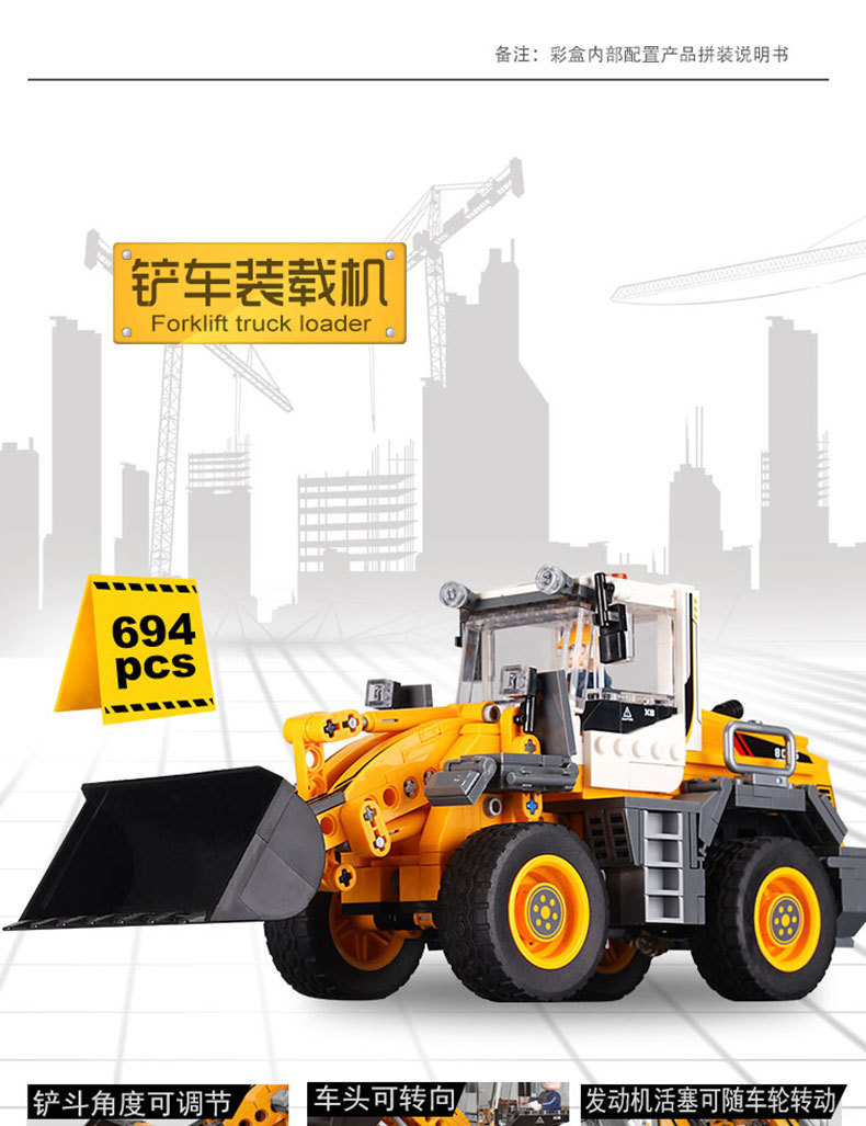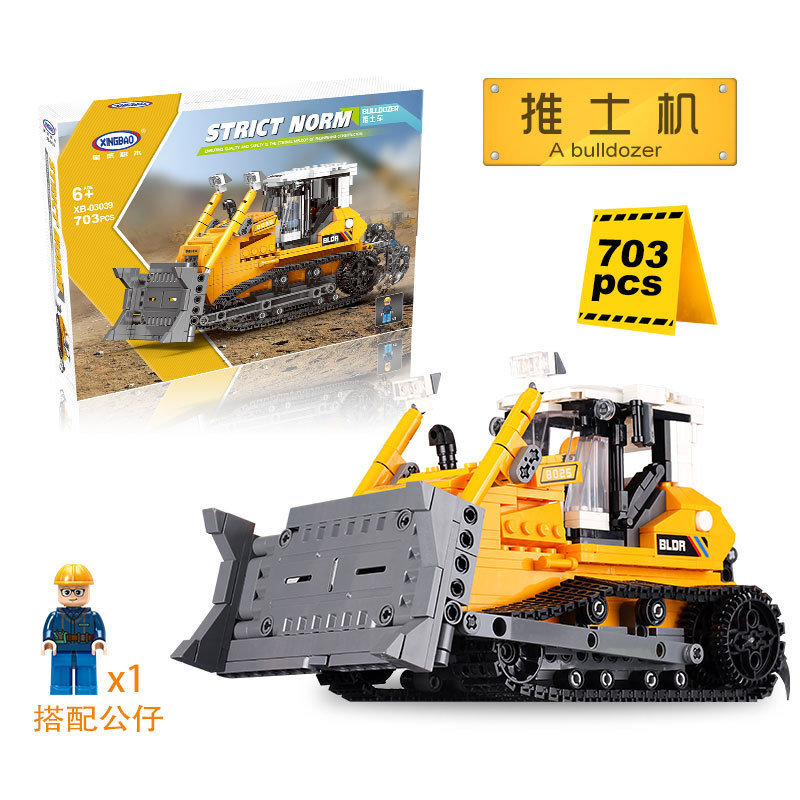Xingbao 빌딩 블록 도구 작동 차량 지게차 불도저 굴삭기 시리즈 작은 입자 조립 퍼즐 빌딩 블록 장난감스토어 가기