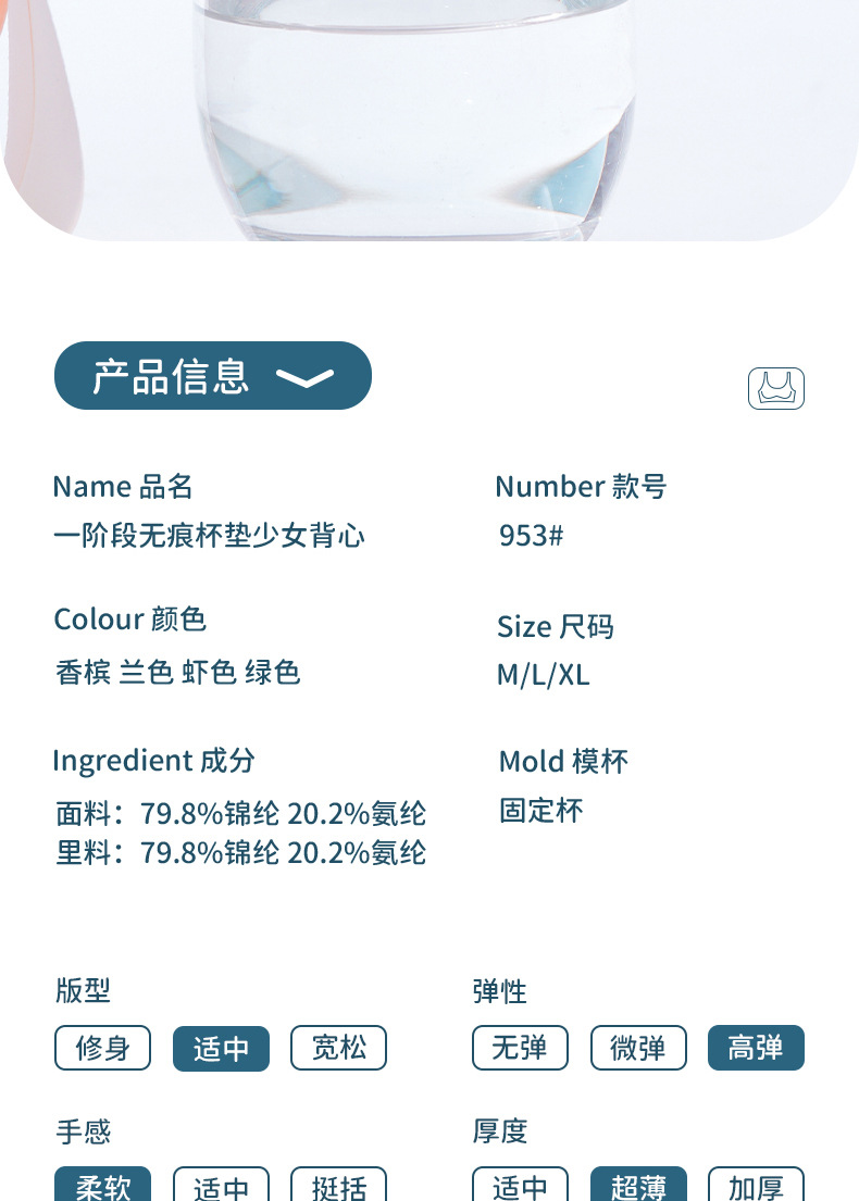 1 단계 여아 속옷 개발 무대 여아 통합 고정 가슴 패드 스트랩리스 가슴 포장 스포츠 조끼 초등학생