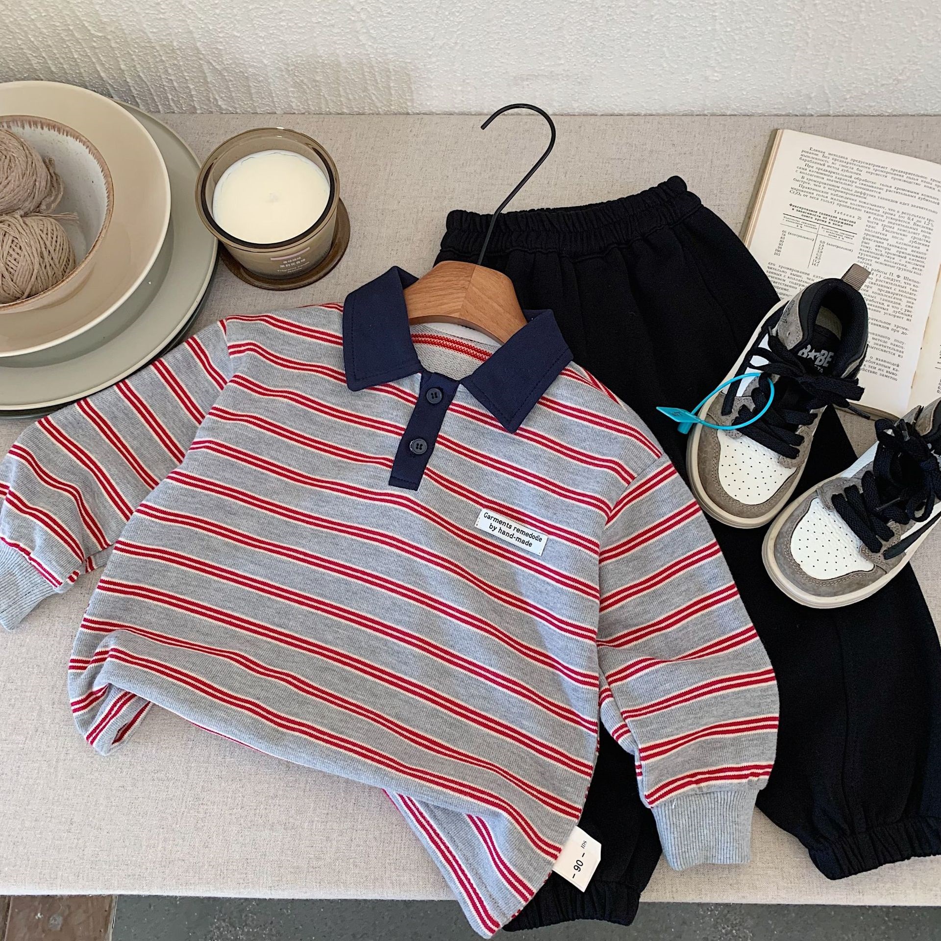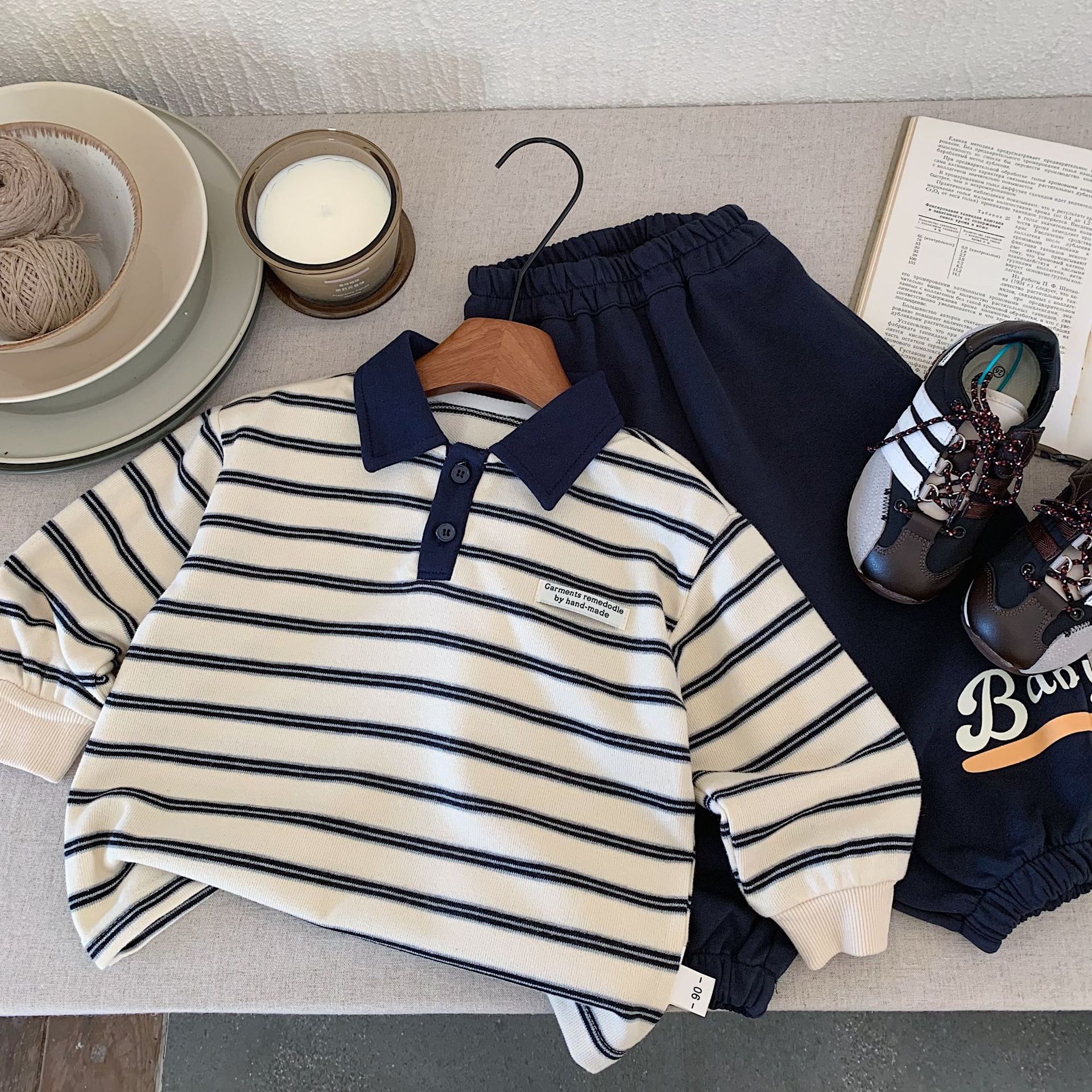 2025 봄 새로운 한국 스타일 어린이 줄무늬 스웨터 소년과 소녀 POLO 칼라 풀오버 탑 트렌디스토어 가기