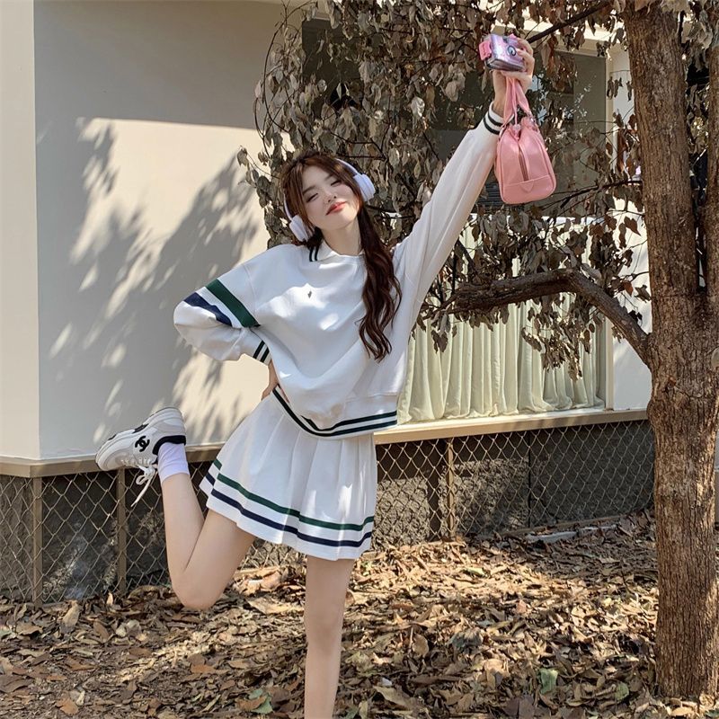 캐주얼 스포츠 세트 여성의 가을 2025 새로운 패션 외국식 프라이드 스트리트 하이 엔드 스웨터 스커트 투피스 세트스토어 가기