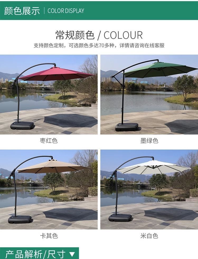 • 더블 탑 오프화이트 바나나 우산에는 물탱크 60kg 개가 포함되어 있습니다.