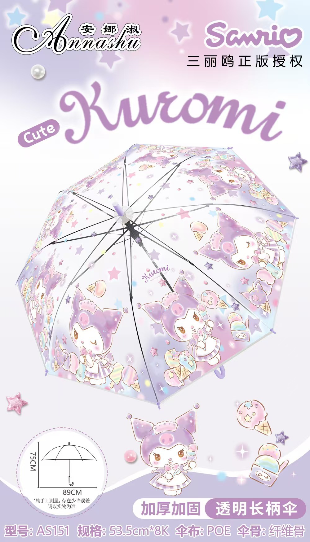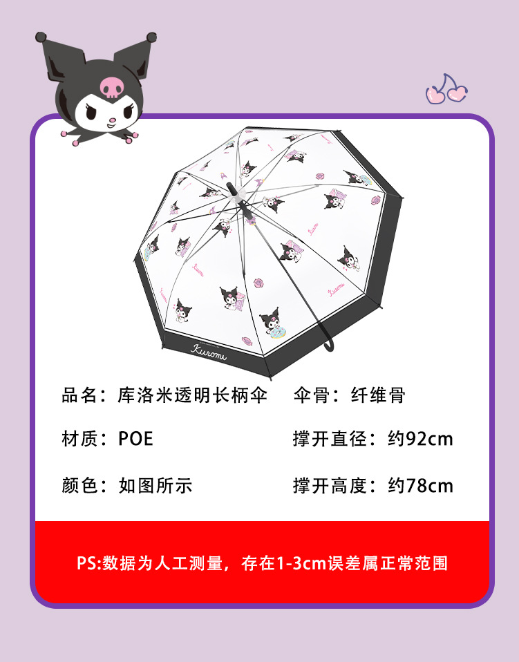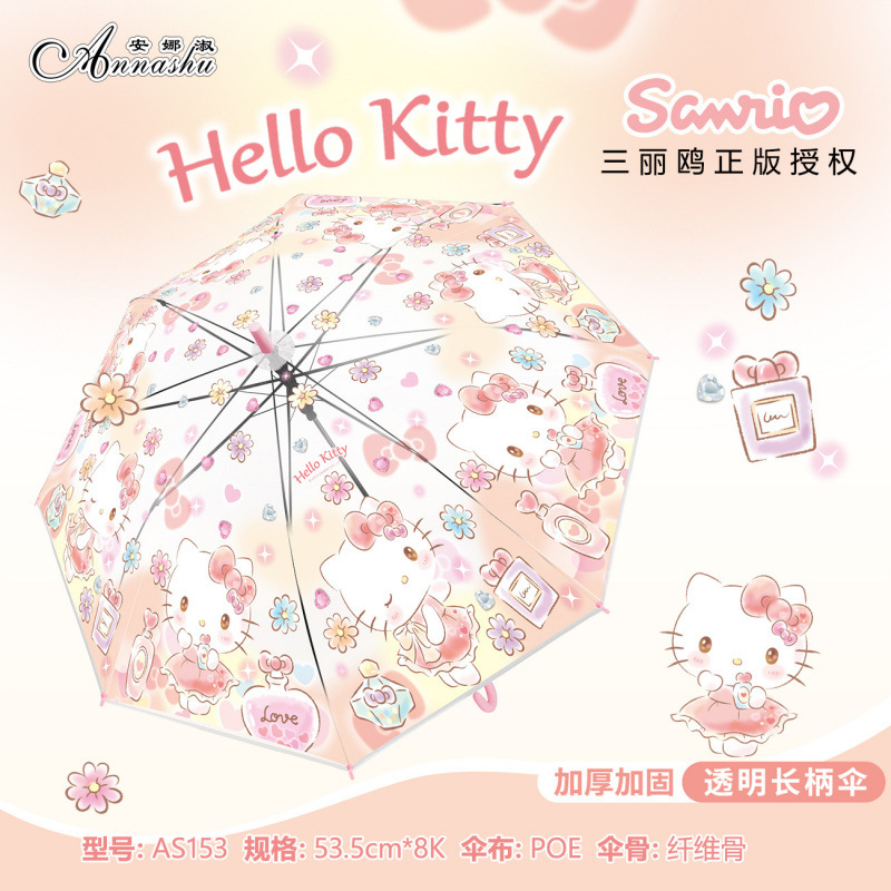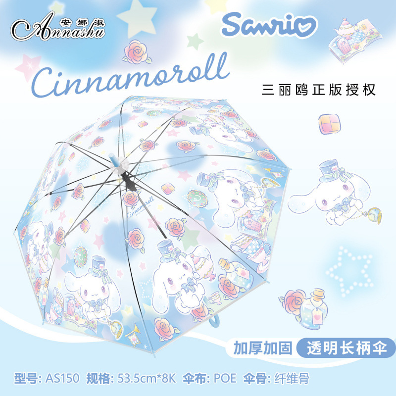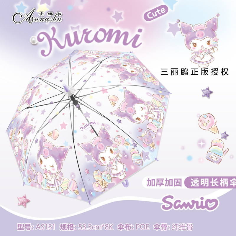 정품 산리오 우산 어린이 환경 우산 귀여운 만화 쿨로 미 스트레이트 긴 손잡이 자동 투명 우산