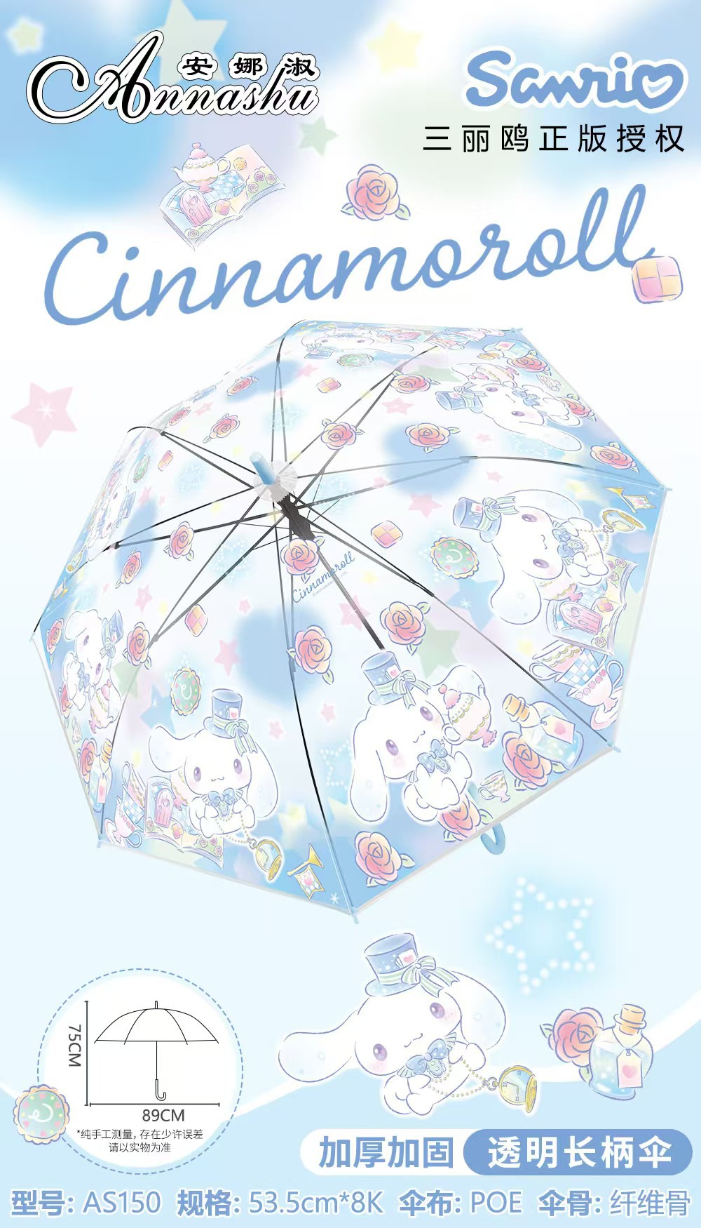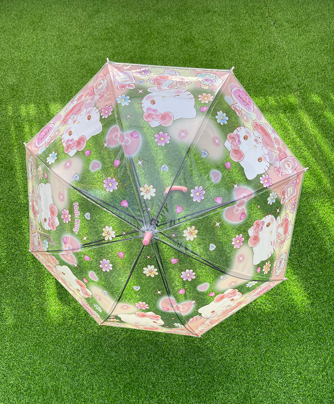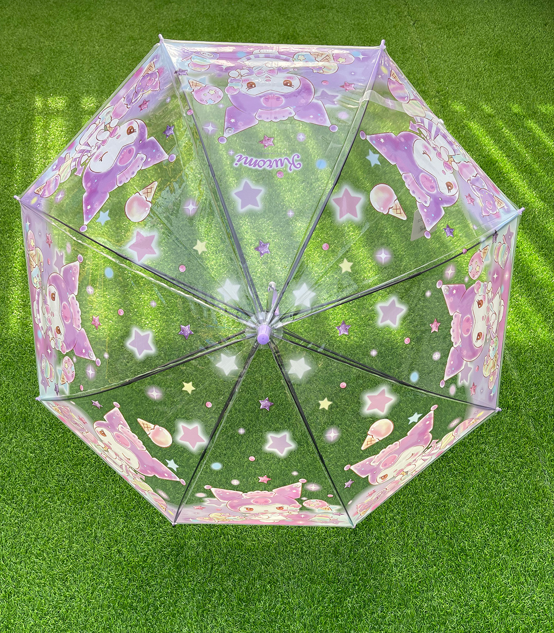 정품 산리오 우산 어린이 환경 우산 귀여운 만화 쿨로 미 스트레이트 긴 손잡이 자동 투명 우산