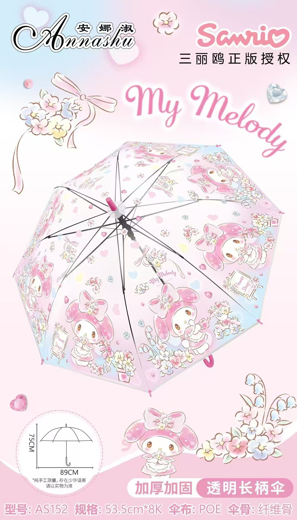 정품 산리오 우산 어린이 환경 우산 귀여운 만화 쿨로 미 스트레이트 긴 손잡이 자동 투명 우산스토어 가기