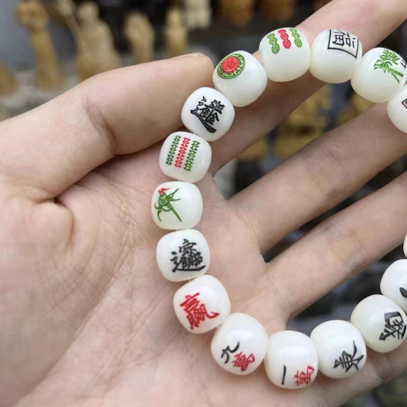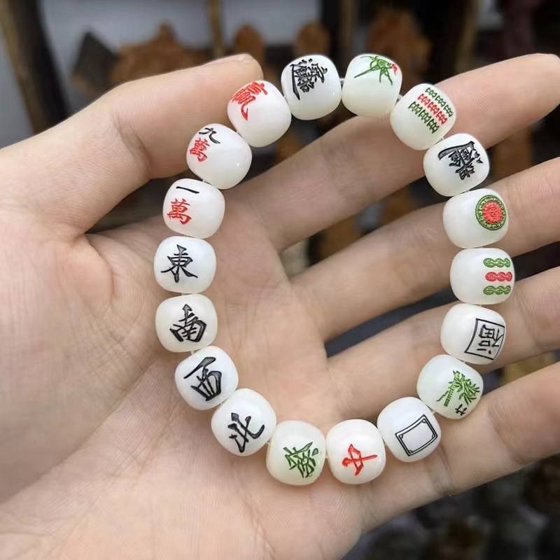 중국 스타일 핸들 후 구슬 13 작은 마작 팔찌 틈새 디자인 랩 손가락 소프트 플레이트 플레이 손으로 꼬인 팔찌스토어 가기