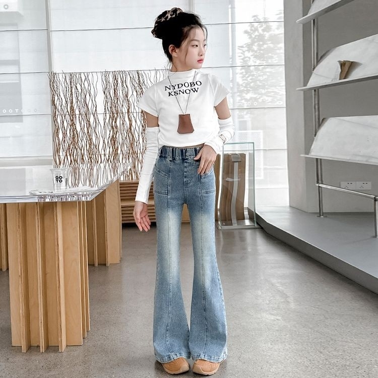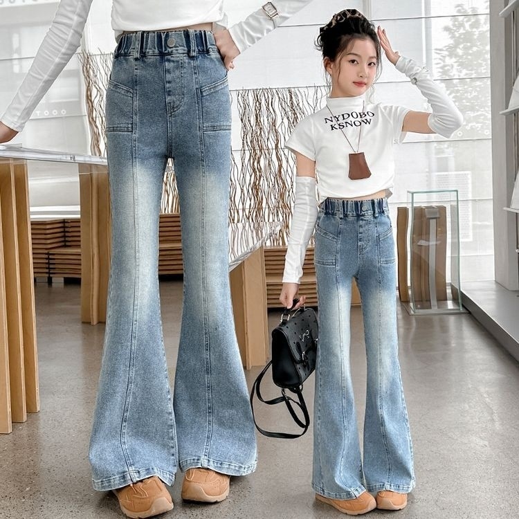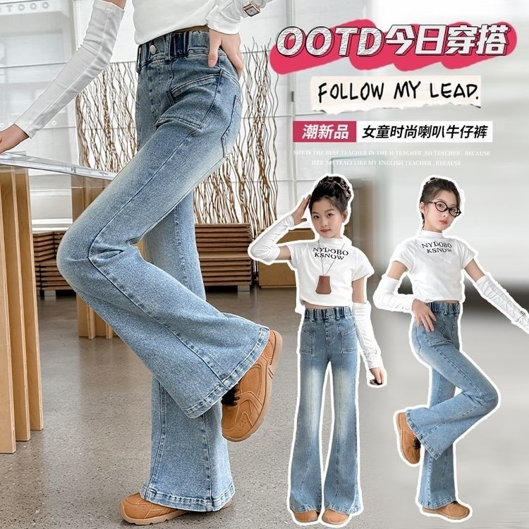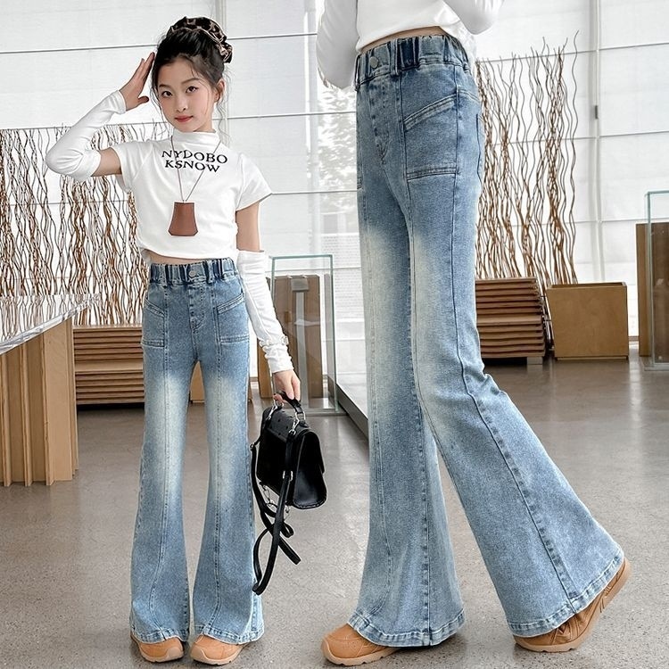 소녀 청바지 봄과 가을 인터넷 축하 2025 새로운 스타일 중대형 어린이 유행 바지 봄 착용 어린이 바지 봄스토어 가기