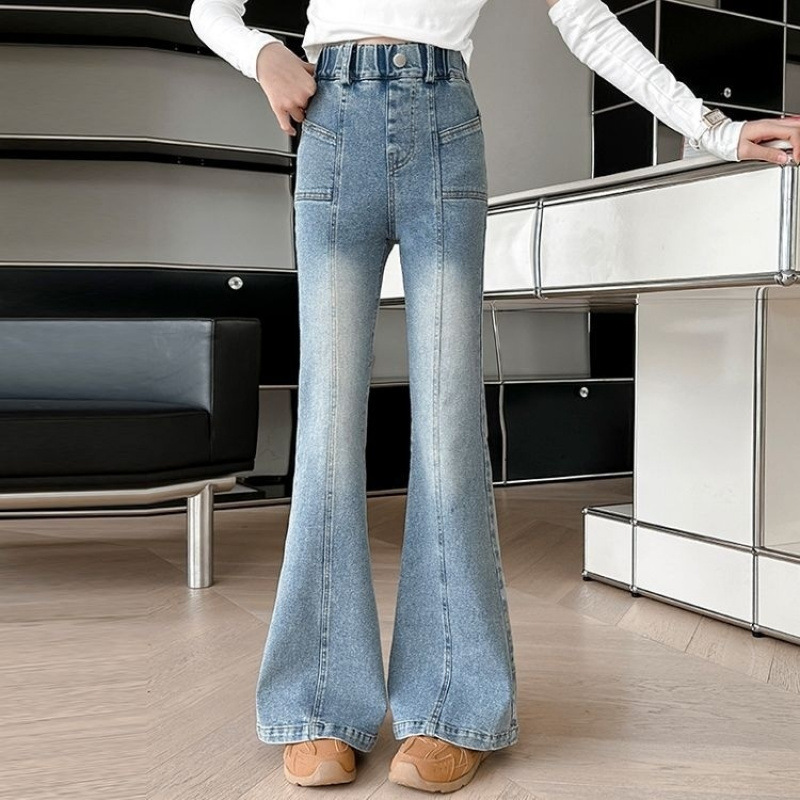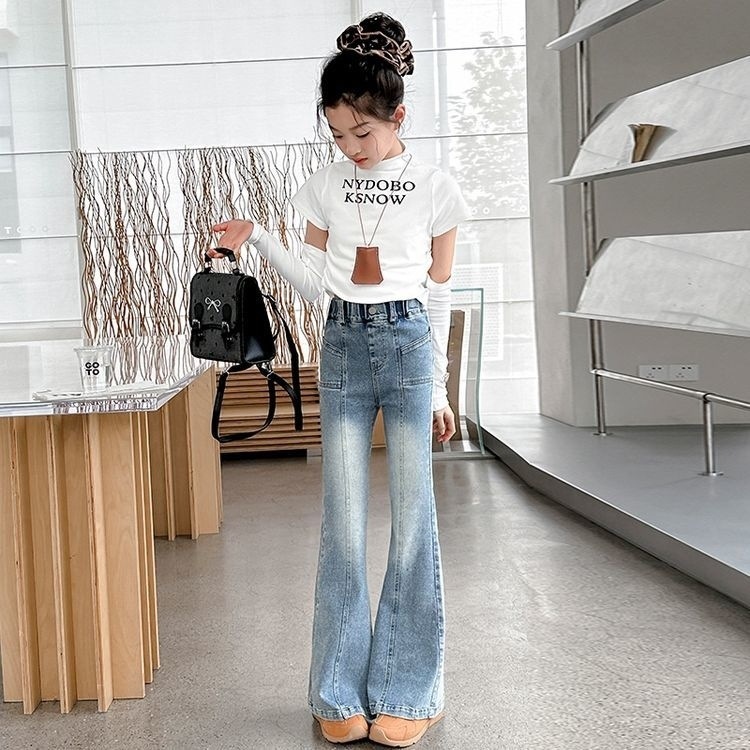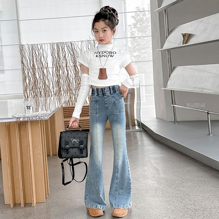 소녀 청바지 봄과 가을 인터넷 축하 2025 새로운 스타일 중대형 어린이 유행 바지 봄 착용 어린이 바지 봄