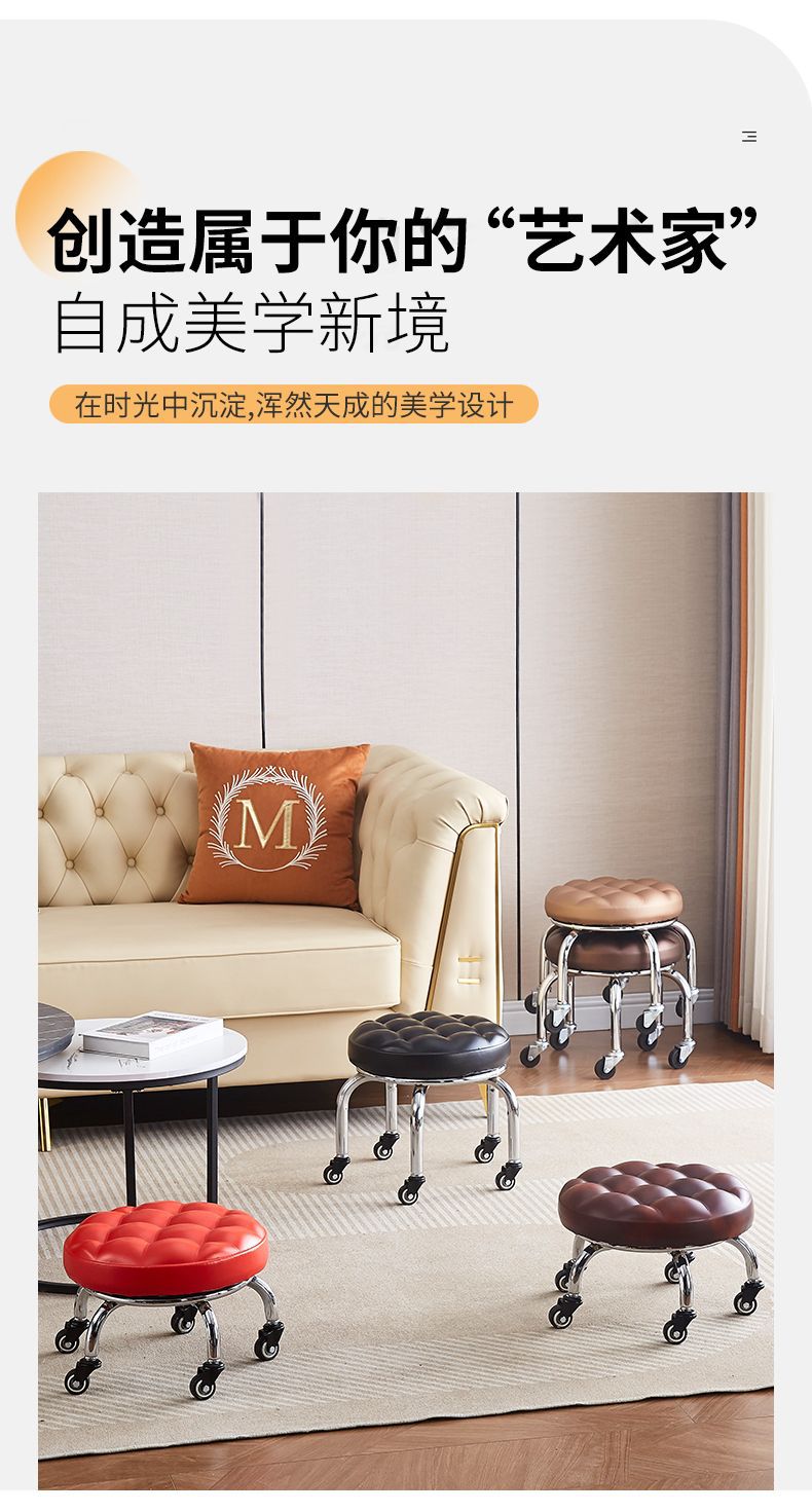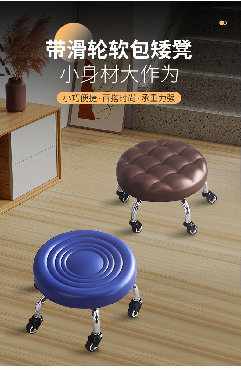 가정용 아름다운 봉제 의자 풀리 낮은 의자 네일 아트 페디큐어 로타리 바닥 닦은 바퀴 작은 벤치 어린이 벤치 아기 학습 의자스토어 가기
