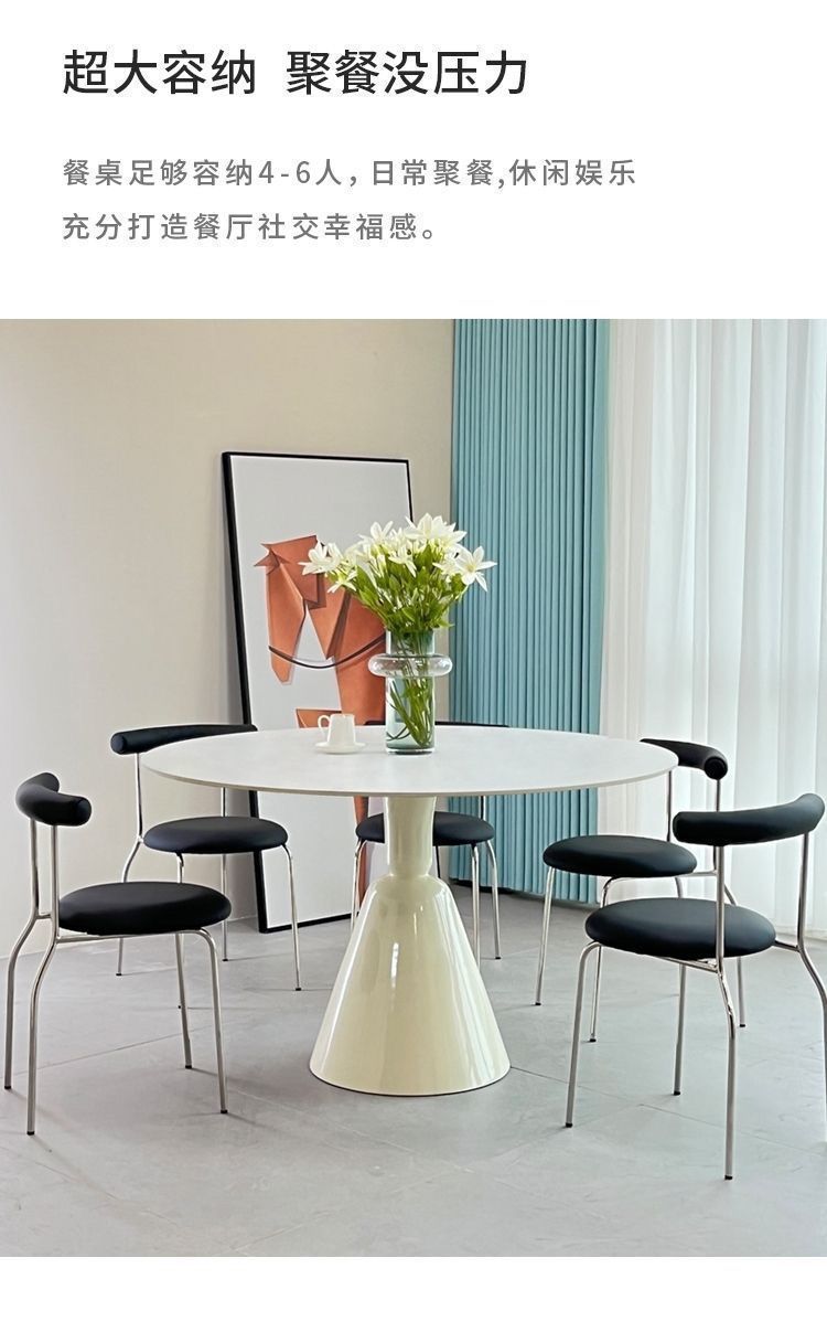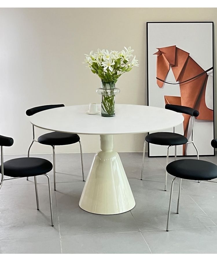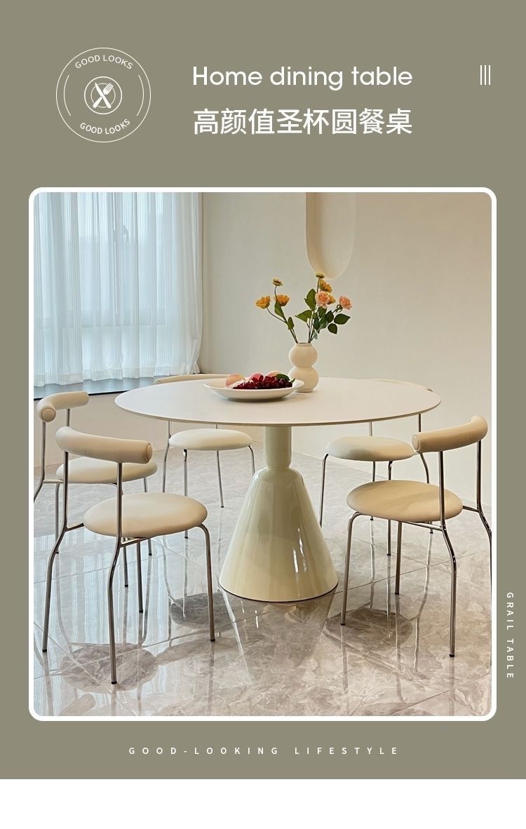 프랑스 크림 스타일 순수한 화이트 록 플레이트 식탁 가정용 식탁 및 의자 현대 간단한 작은 아파트 둥근 성배 식탁스토어 가기