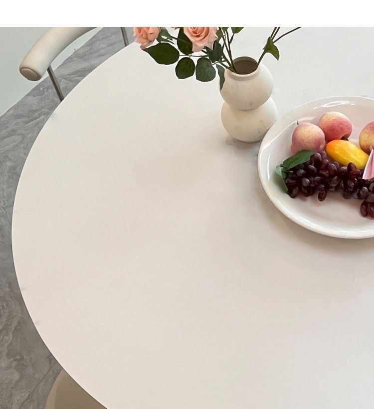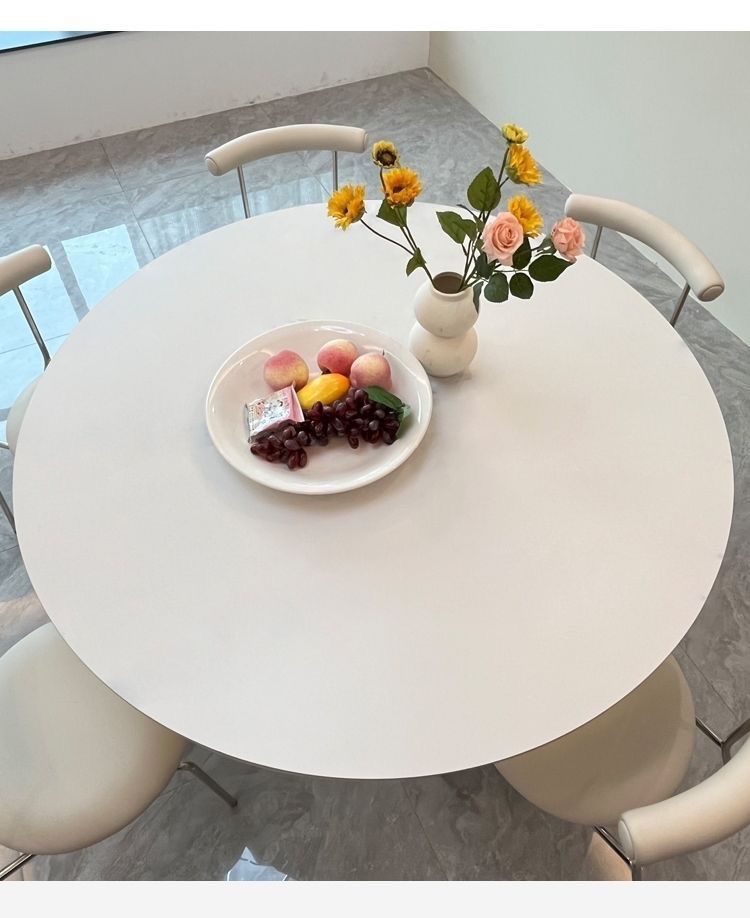 프랑스 크림 스타일 순수한 화이트 록 플레이트 식탁 가정용 식탁 및 의자 현대 간단한 작은 아파트 둥근 성배 식탁