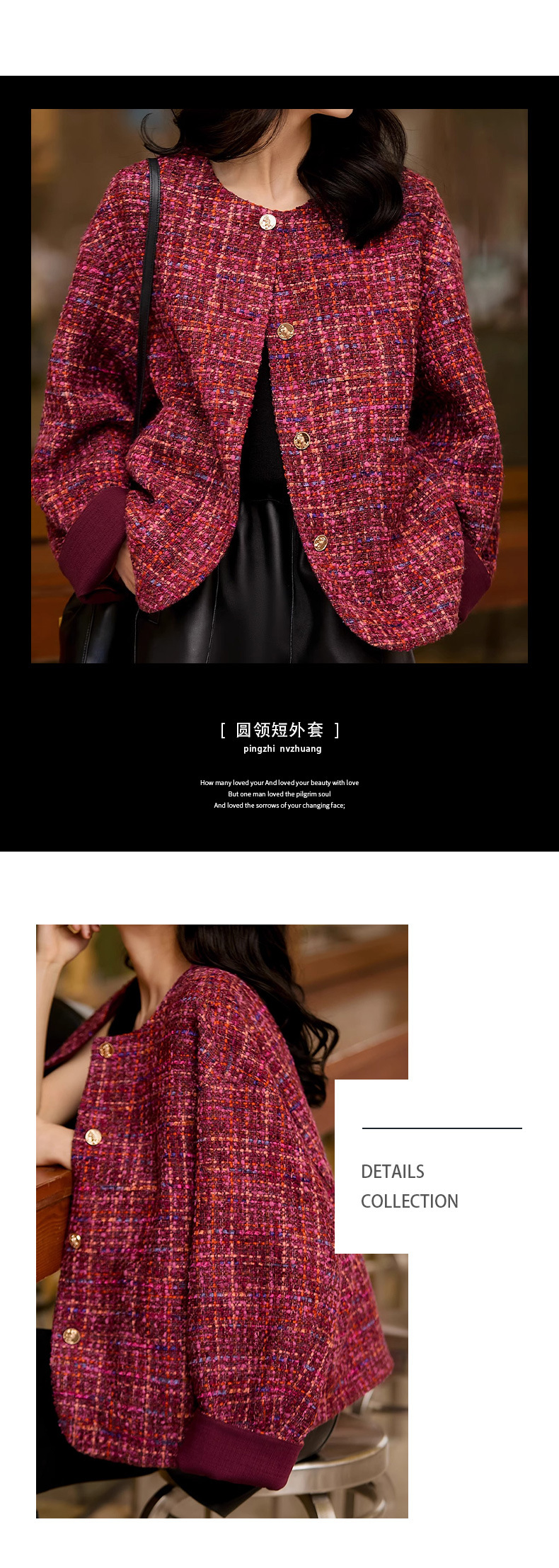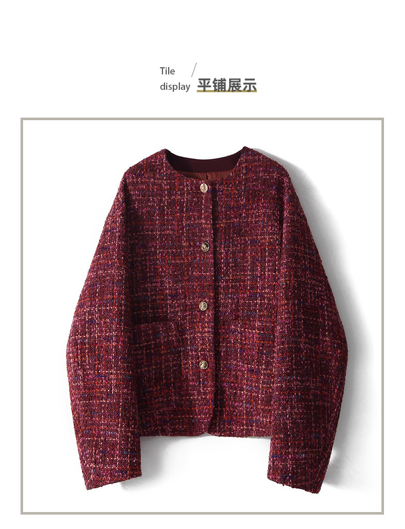 양털 트위드 스타일 숏 코트 루즈핏 라운드넥 2025 가을 신상 고급 여성복 레드