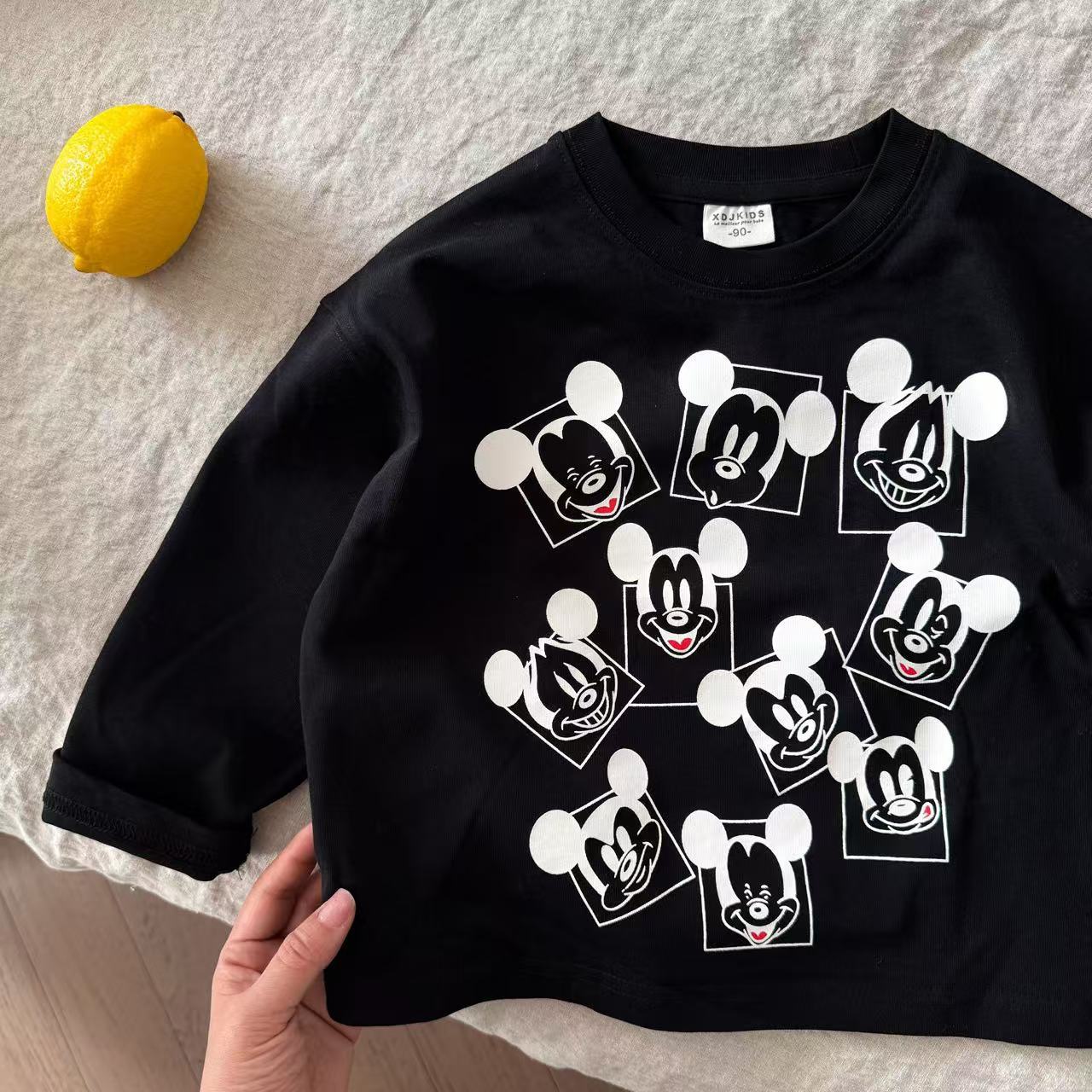 아동용 기본 셔츠 2025 봄 아동 의류 새로운 만화 프린트 소년과 소녀 캐주얼 다목적 긴팔 티셔츠